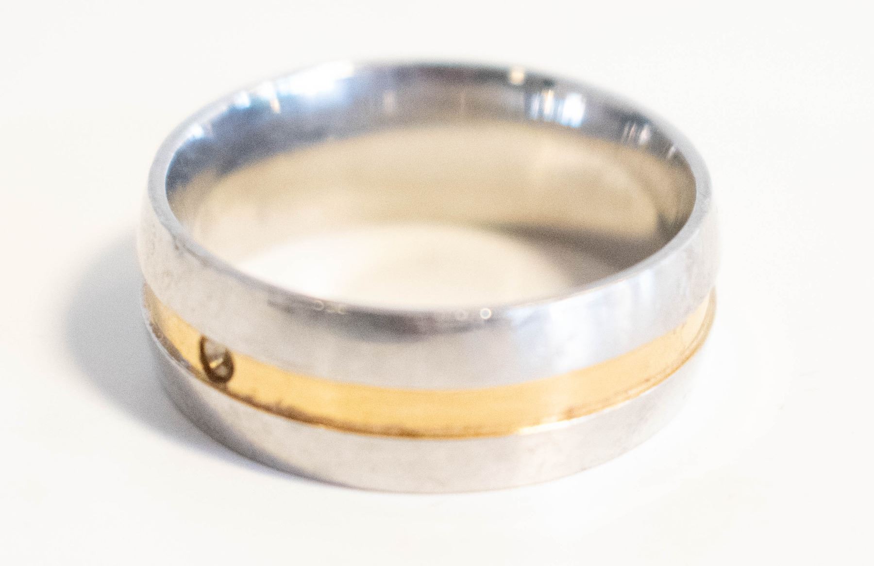 MENS SZ 10 BC STEEL RING/ GOLD PLATED CENTER