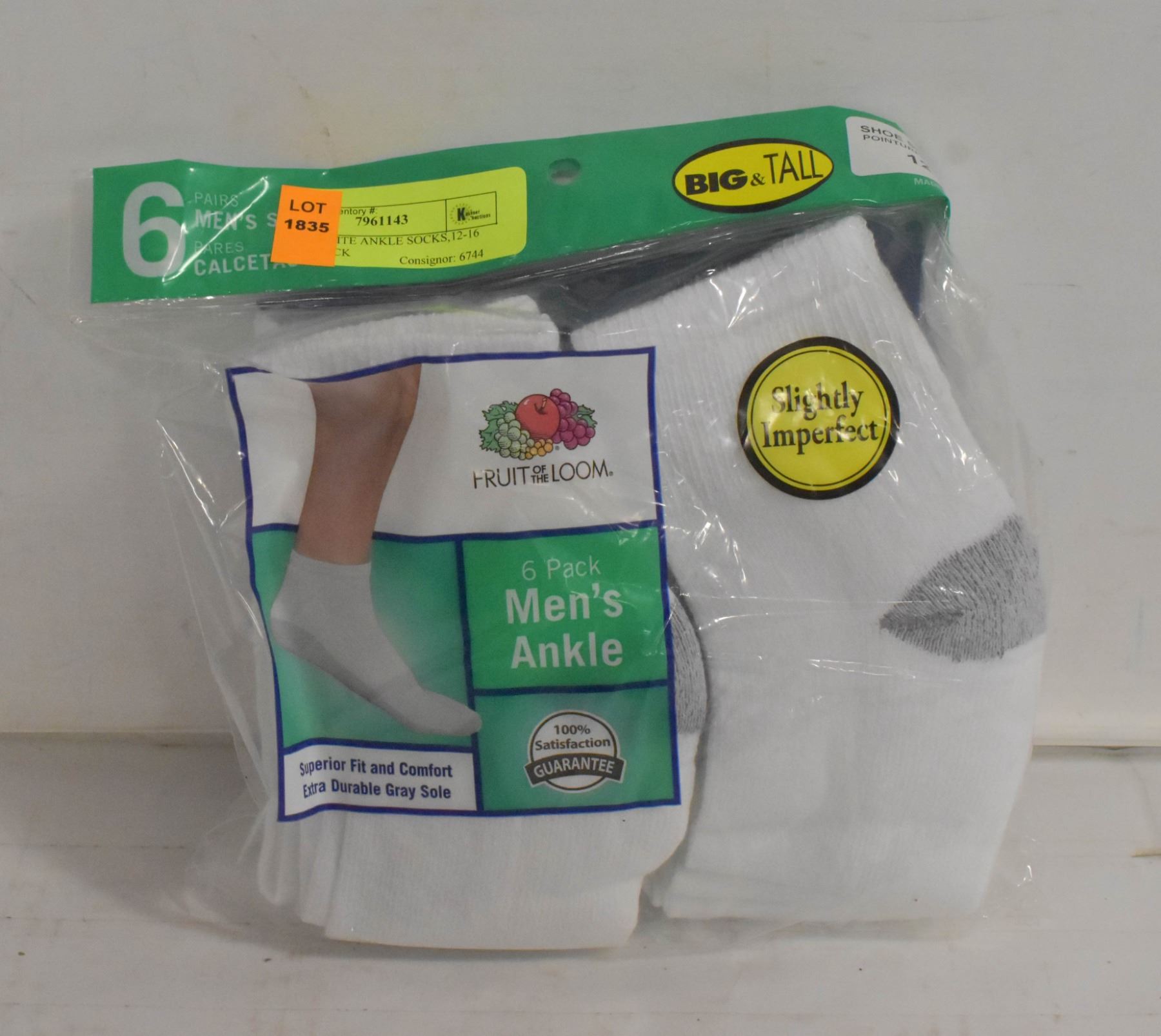 MENS WHITE ANKLE SOCKS,12-16 SIZE 6-PACK