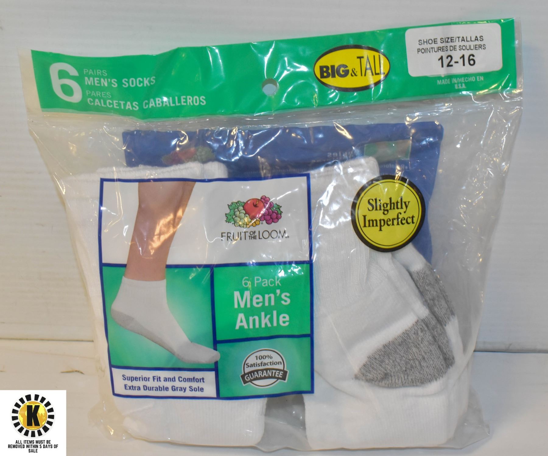 MENS WHITE ANKLE SOCKS, SIZE 12-16, 6 PACK