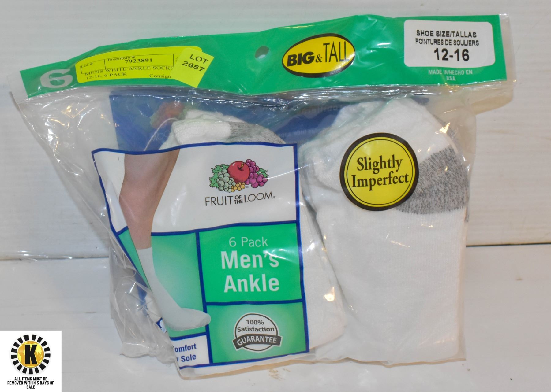 MENS WHITE ANKLE SOCKS, SIZE 12-16, 6 PACK