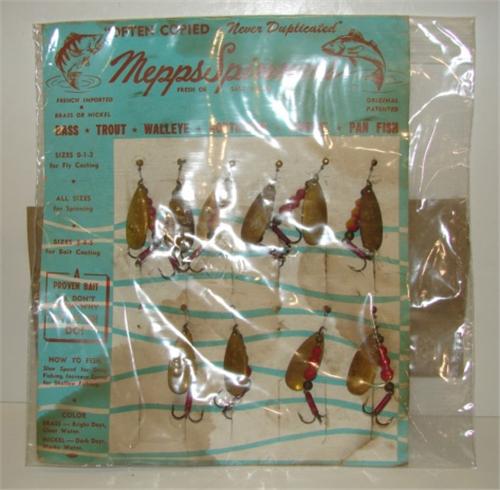 MEPPS FISHING LURES. Consists of 10 Mepps Comet lures on cardboard sheet.