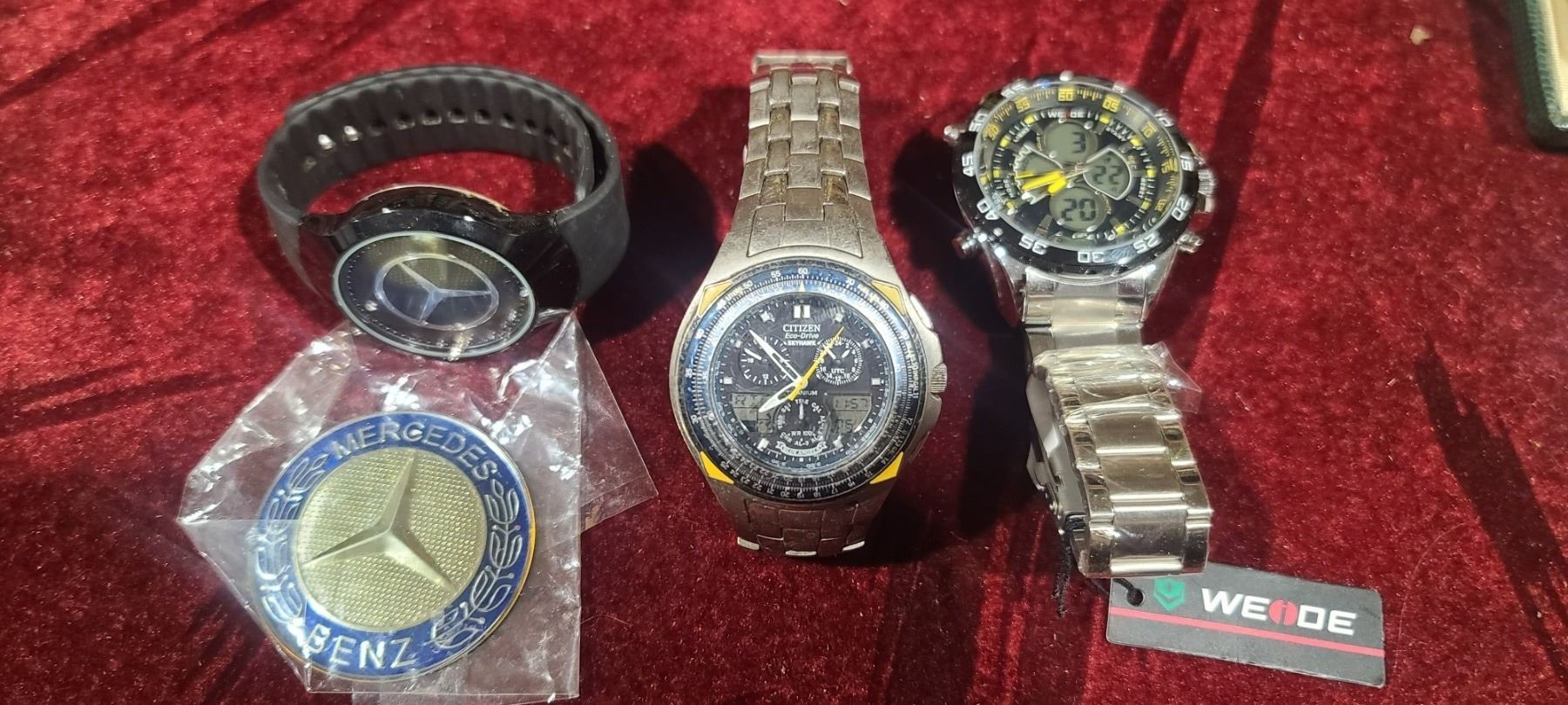MERCEDES WATCH WITH BADGE, CITIZEN BLUE ANGELS WATCH AND NEW WEODE