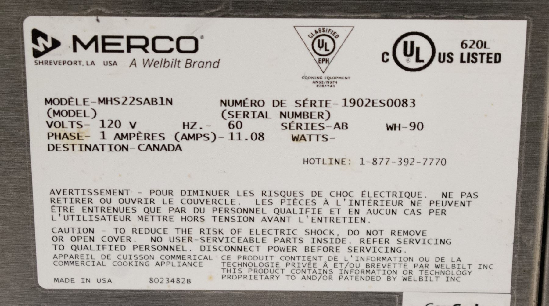 MODEL# MHS22SAB1N, 120 VOLTS, 60 HZ, PHASE 1, 11.08 AMPS, 19.5" X 16" X 12"