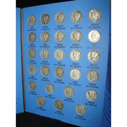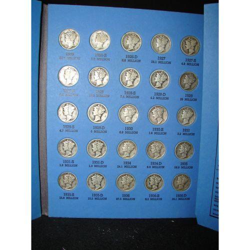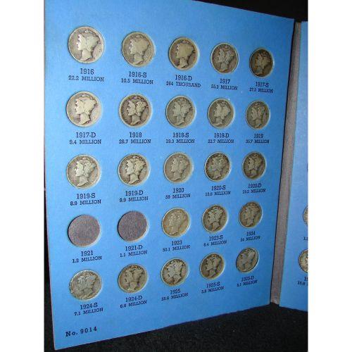 ALBUM OF MERCURY DIMES. 1916 to 1945. Missing 1921 & 1921-D.