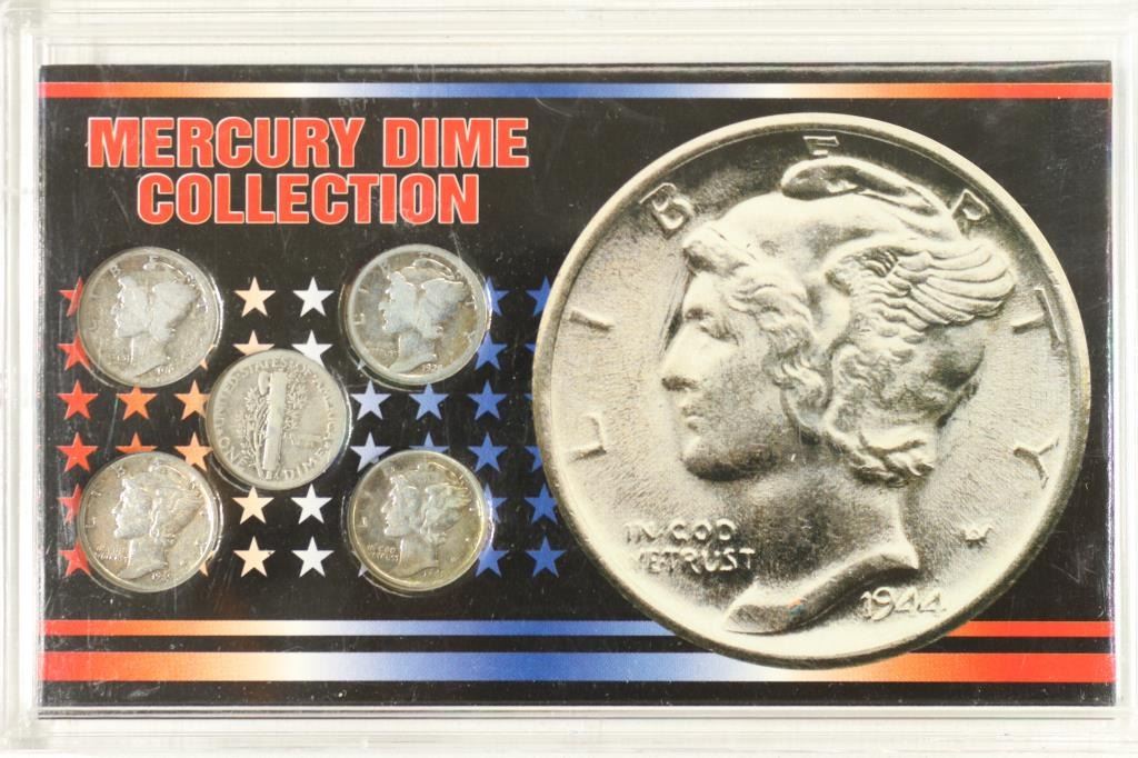 MERCURY DIME COLLECTION. 5 DIMES IN PLASTIC CASE