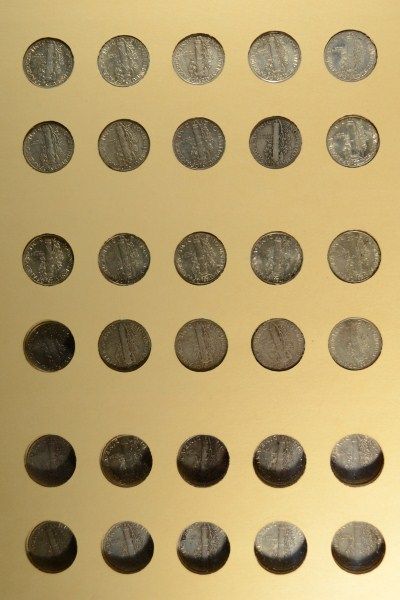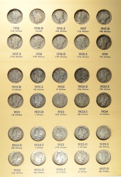 MERCURY DIME SET COMPLETE: 1916-D GOOD, 1921 VF, 1921-D VG, 1942/1 FINE SCRATCH