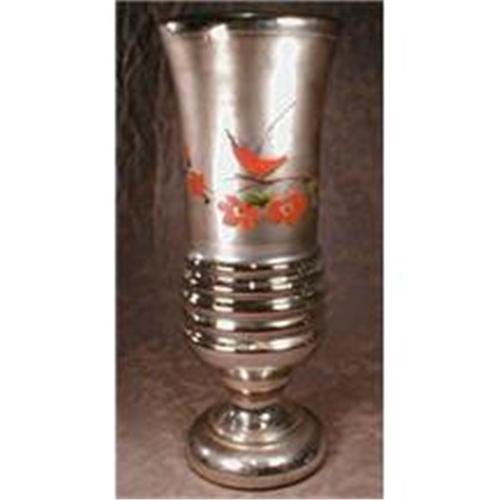 </font></strong>Antique Mercury Glass vase with hand painted bluebird perched on a flowering branch. This large vase is mouth blown and molded light weight glass.