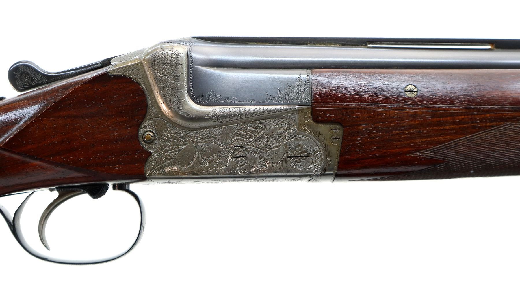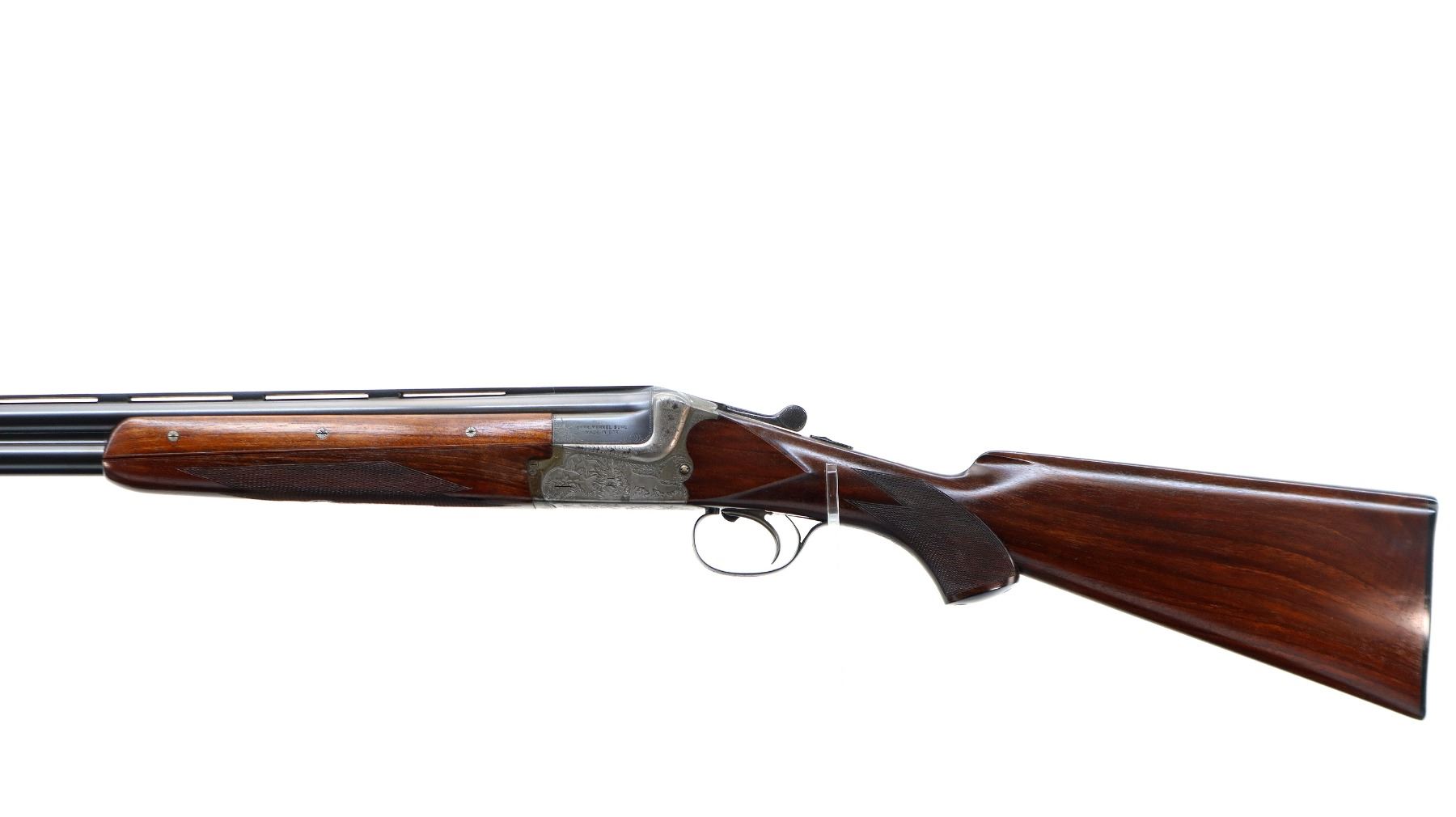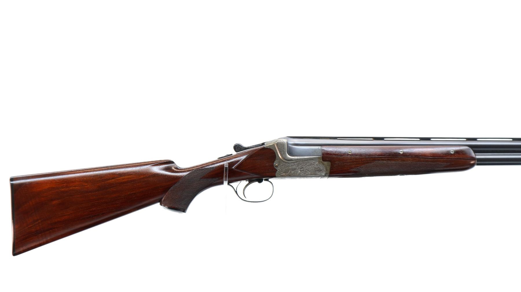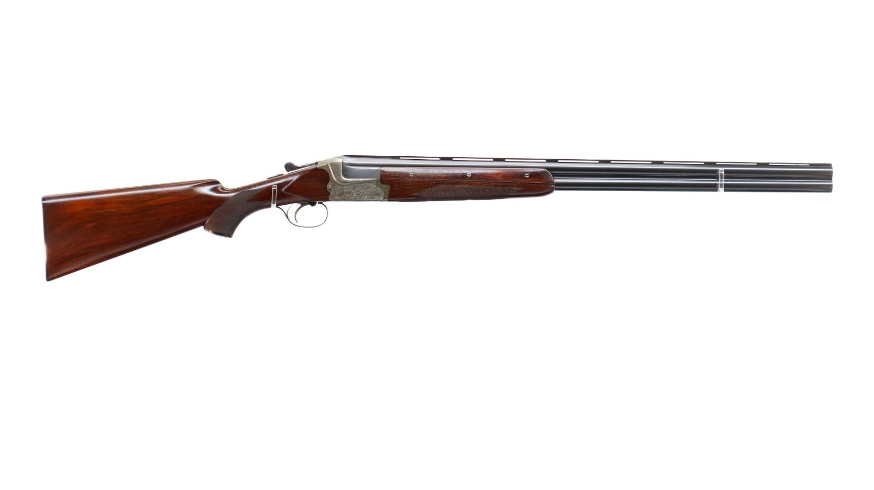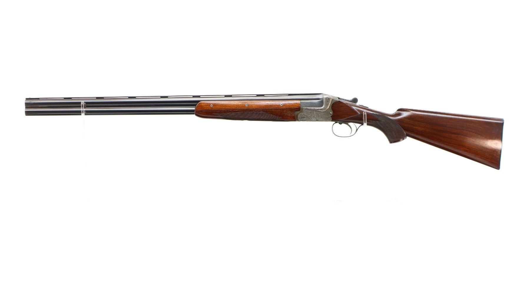 Main Description: White front bead, polish blued barrels with vent rib, relief engraved silver receiver, manual safety, ejectors, cocking indicators, single mechanical trigger with checkered blued steel barrel selector. Four piece wood stocks, checkered forearm, pistol grip and black polymer butt plate, grip cap