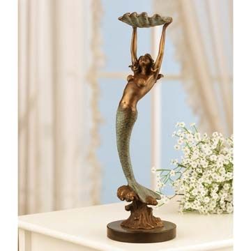 MERMAID BRONZE SCULPTURE - 17.5"H X 5.5"W X 5"D - MOUNTED ON MARBLE BASE