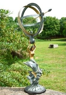 MERMAID & DOLPHIN ARMILLARY - 39.5"H 17"W 13"D - ALUMINUM & BRASS