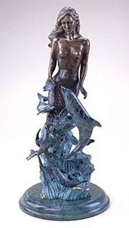 MERMAID & DOLPHINS BRONZE SCULPTURE - 21"H 10"W 10.5 "D - GREAT ATTENTION TO DETAIL - BEAUTIFUL FINISH - LOST WAX CAST- MOUNTED ON MARBLE BASE