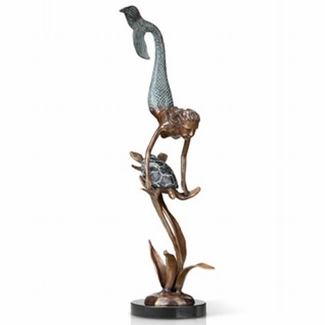MERMAID & TURTLE BRONZE SCULPTURE - 19.5"H X 7"W X 5.5" D - GREAT ATTENTION TO DETAIL - BEAUTIFUL FINISH - LOST WAX CAST- MOUNTED ON MARBLE BASE