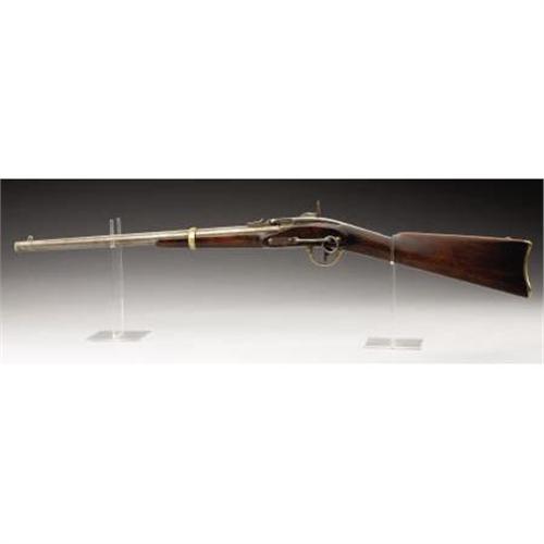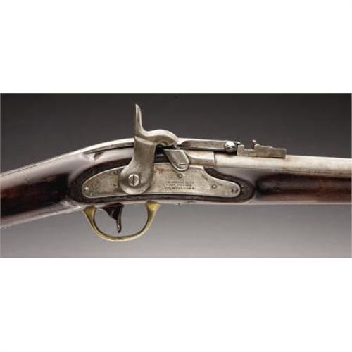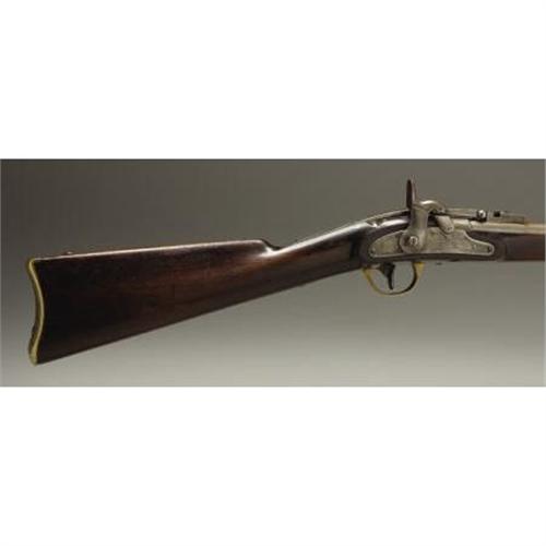 <B>VERY NICE SECOND TYPE MERRILL .54 CALIBER PERCUSSION BREECH LOADING CIVIL WAR CARBINE (FLAYDERMAN 9B-076).</B></I> Matching serial # 12349. Doubtless a transitional example with all the correct second type features but not marked with the eagle on the lock. A fine honest example of this scarce and very attractive Civil War breech loading carbine.<BR><B><BR>Condition: </B></I>All metal with smooth light gray patina with deep crisp markings, just a few minor patches of very light pitting, very nice. Mechanically perfect, excellent bore. Wood excellent with dark rich patina, nice inspector’s cartouche. A few minor nicks/dents and deep hammer notch from honest use. One small filled screw hole just forward of the band, minor. Brass trigger guard, band and butt plate all excellent.<BR><BR><b>Shipping:</b> Requires 3rd Party Shipping (<a target="_blank" href="http://www.heritageauctions.com/common/shipping.php">view shipping information</a>)