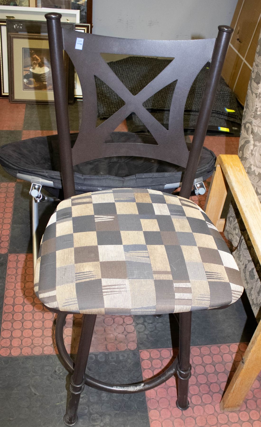 METAL AND FABRIC STOOL W/ FOLDING LOUNGE CHAIR