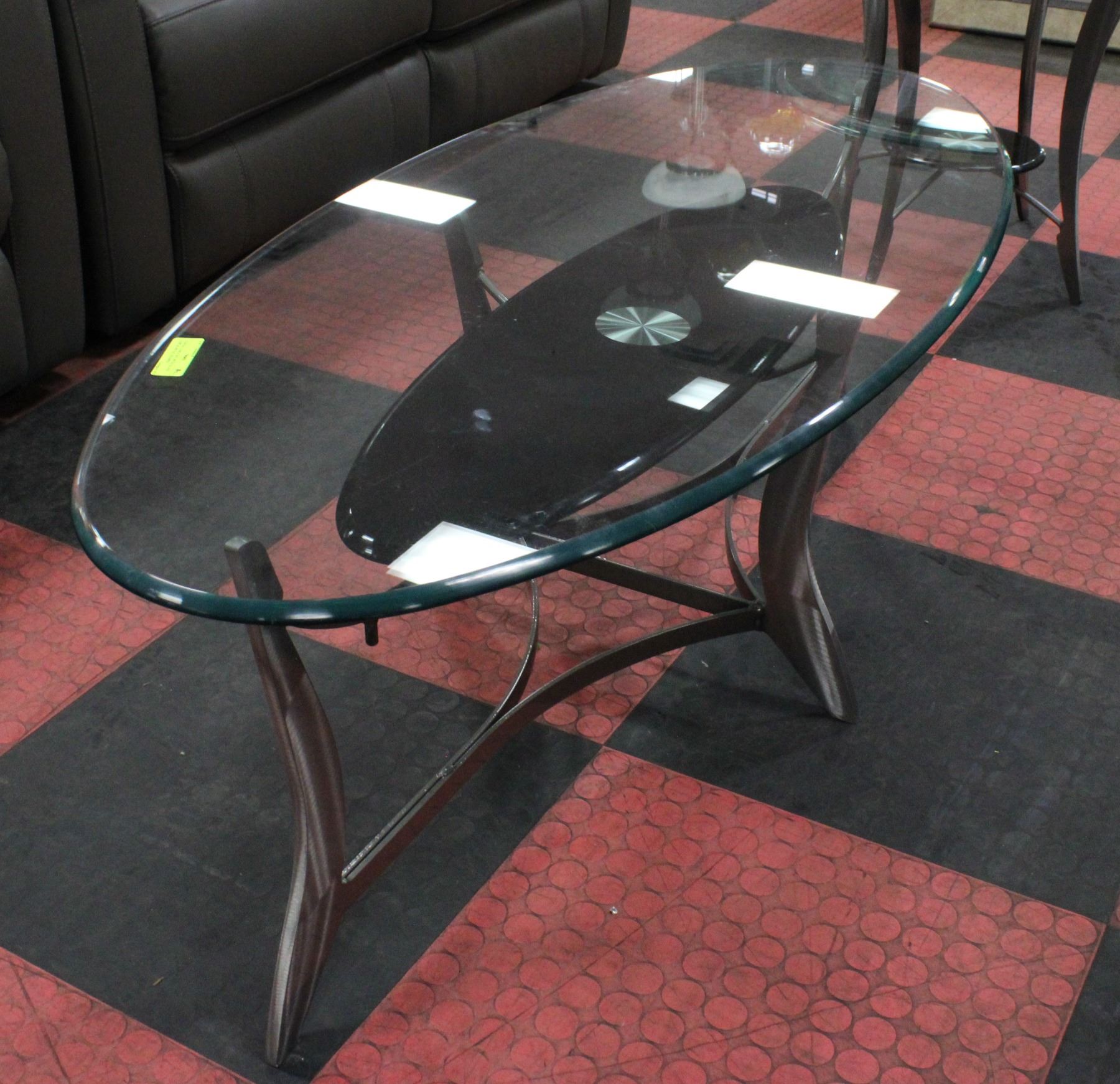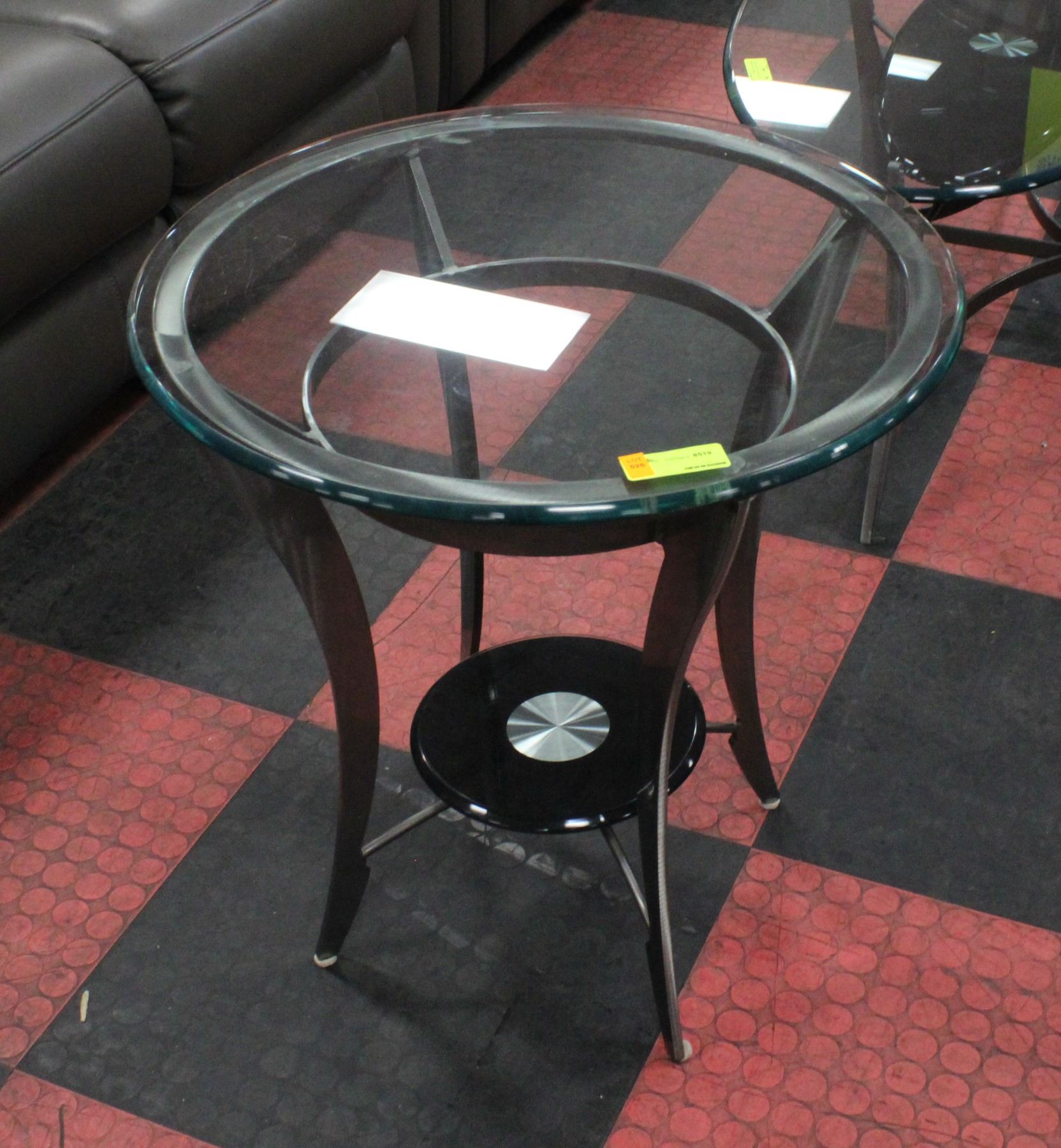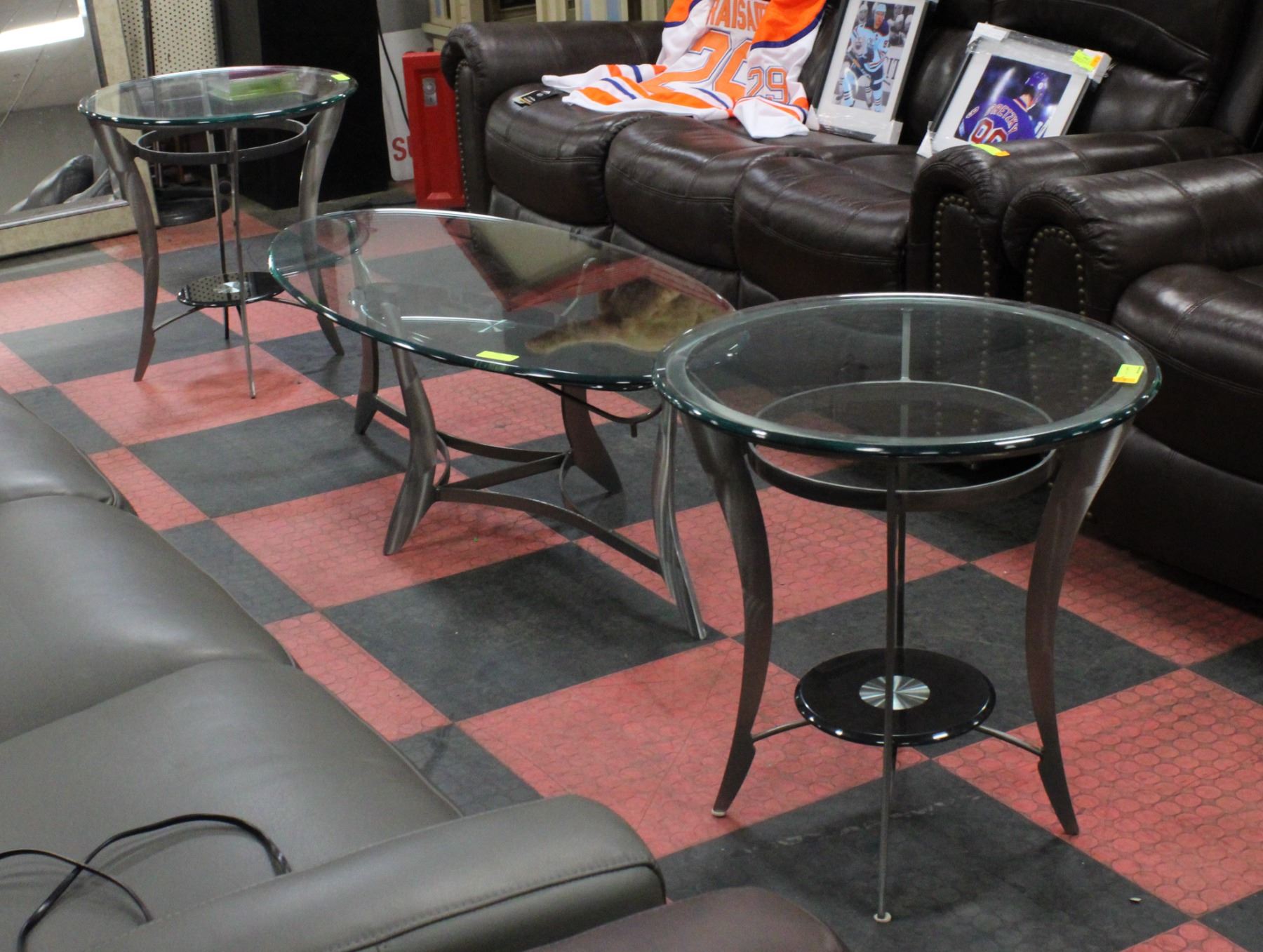 COFFE TABLE APPROX H-18" W-28" L-51" END TABLES APPROX H-25" DIAMETER 24"