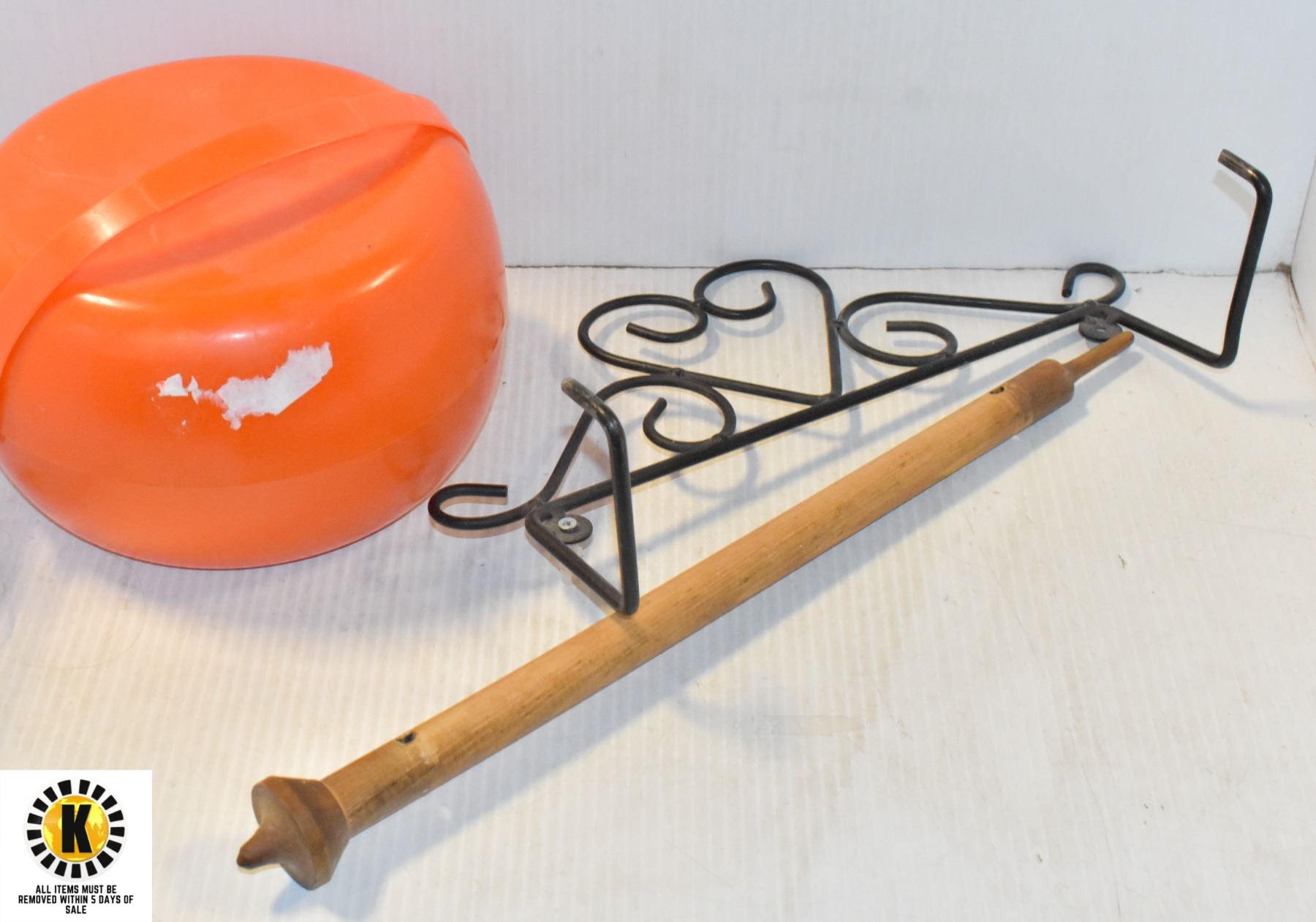 METAL AND WOOD PAPER TOWEL / PICNIC DISH SET FOR
