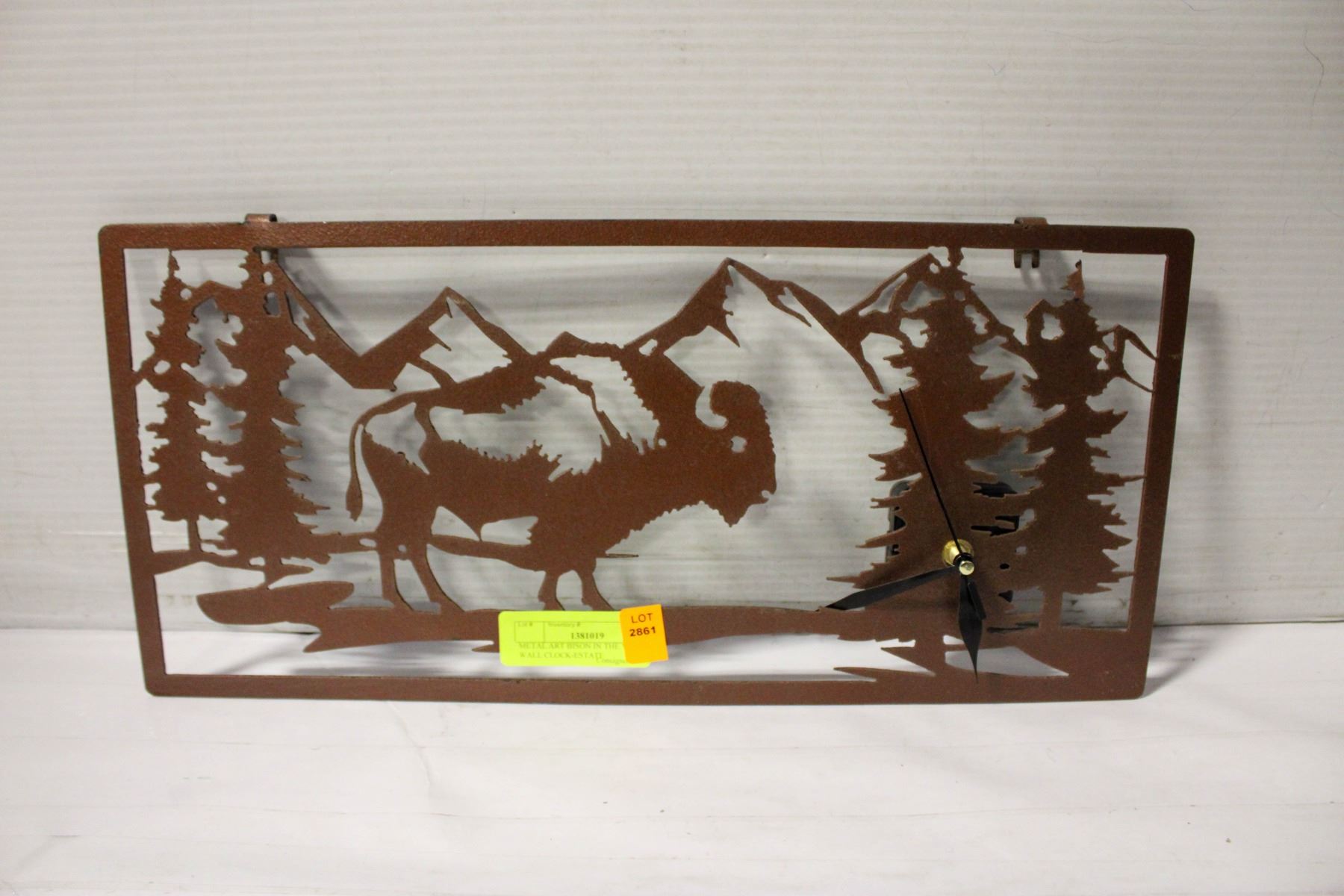 METAL ART BISON IN THE WOODS WALL CLOCK-ESTATE