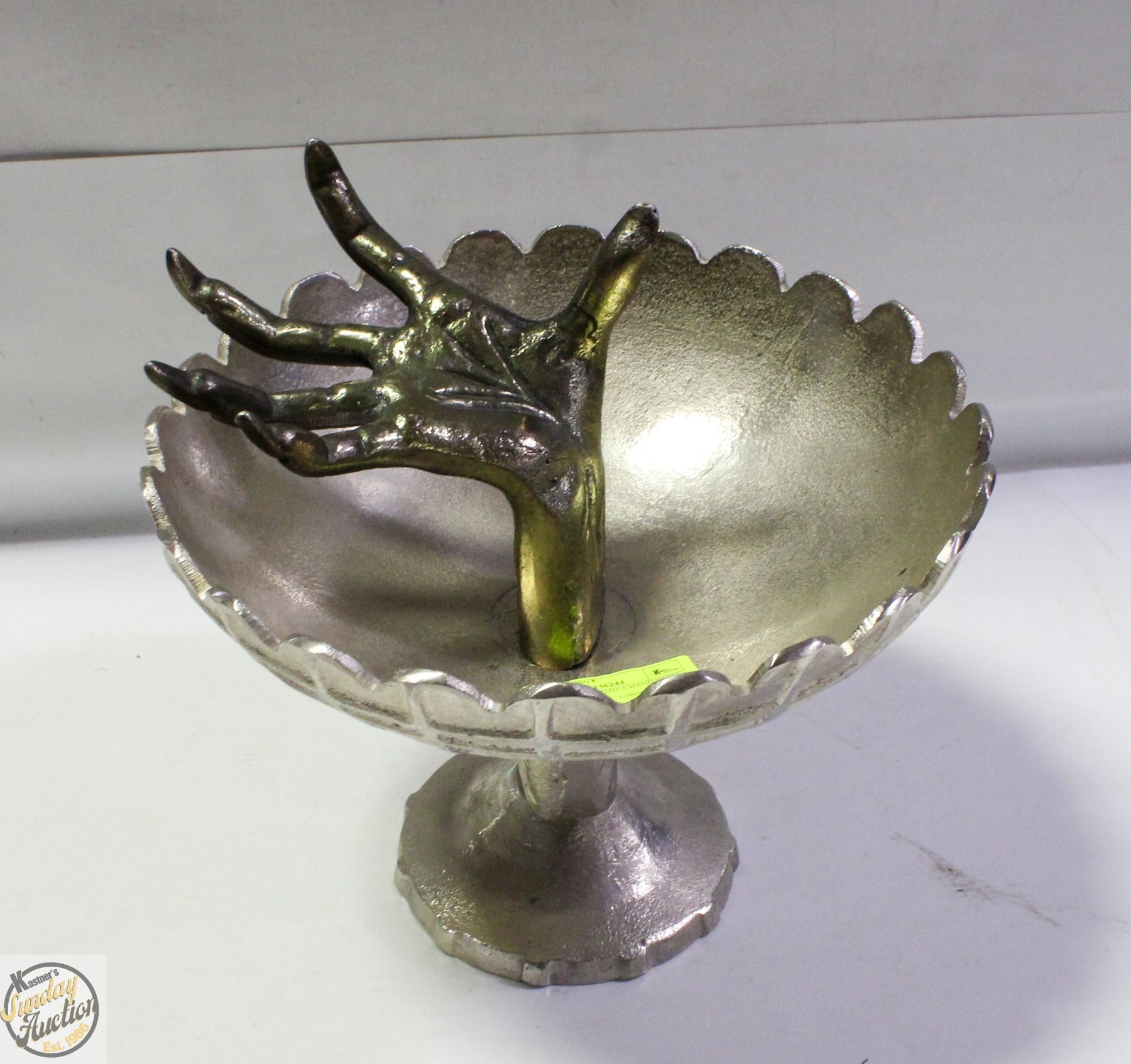 METAL BOWL WITH A HAND IN THE MIDDLE