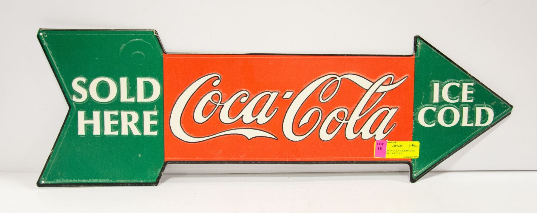 METAL COCA-COLA ARROW SIGN - SOLD HERE - ICE COLD