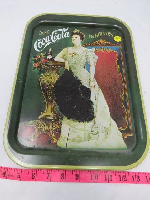 METAL COCA COLA TRAY (LADY HOLDING A FANCY BLACK FAN)