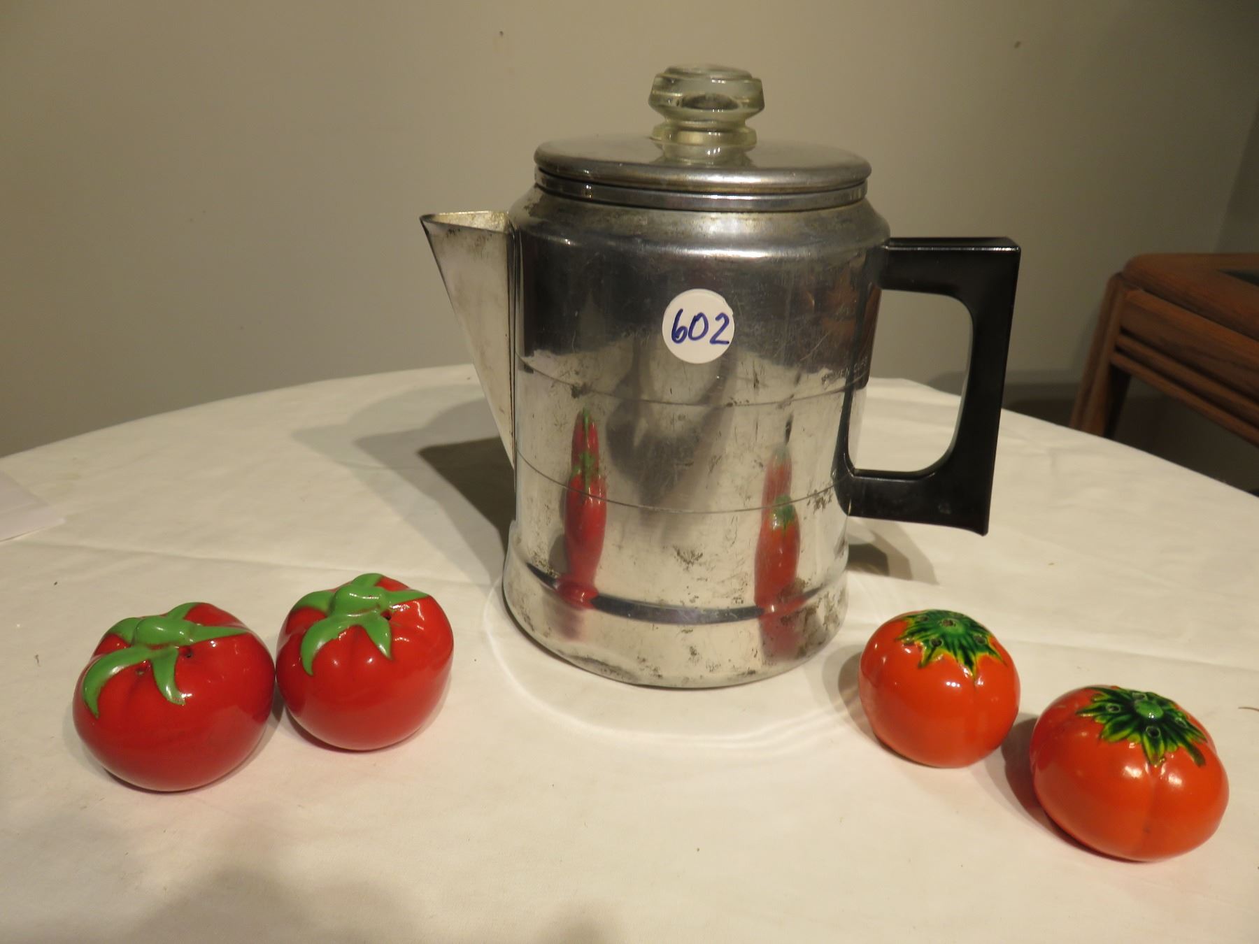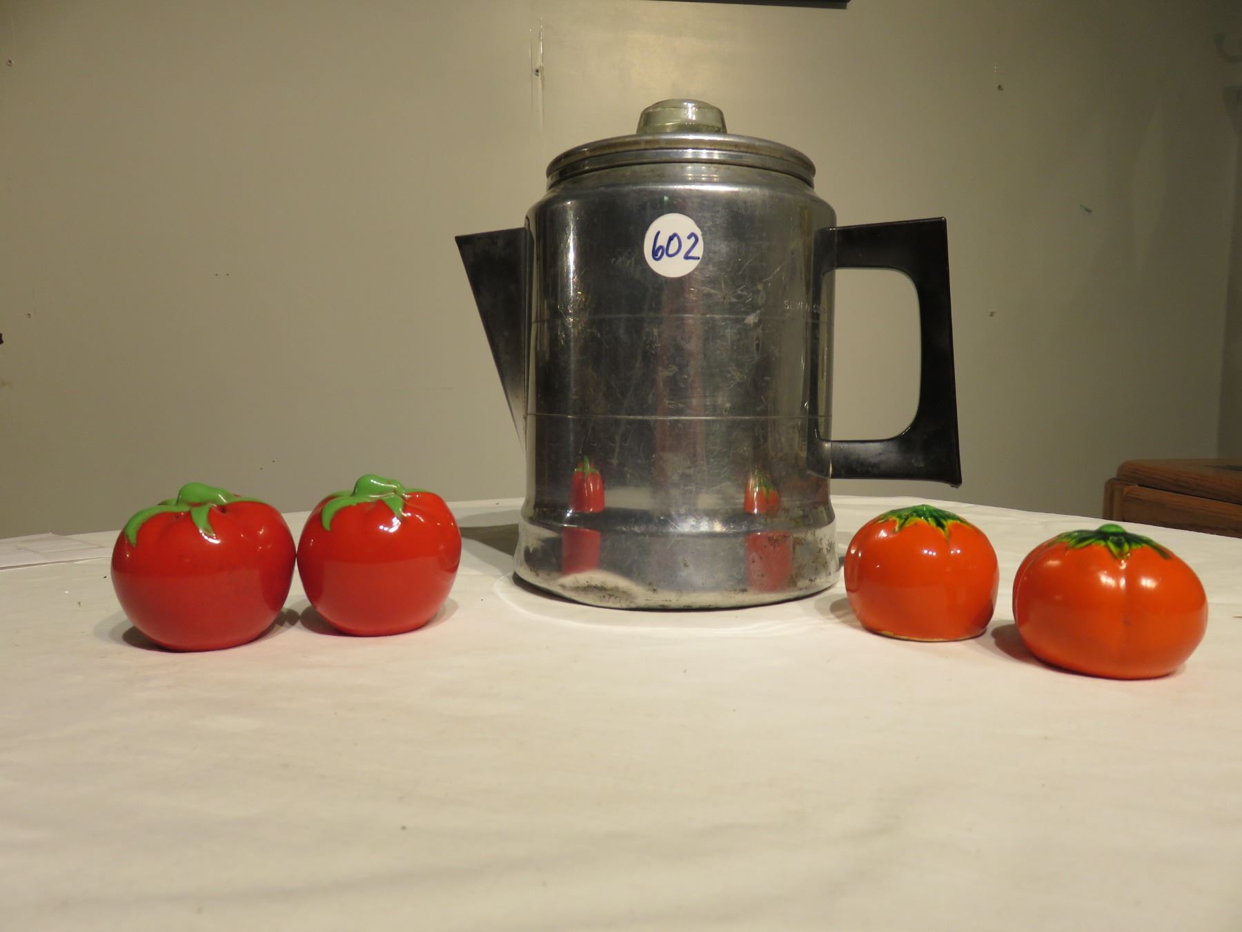 METAL COFFEE POT & 2 SETS OF TOMATOES S/P