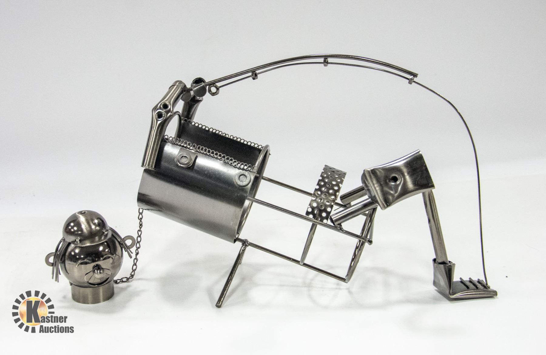 METAL DECORATIVE FISHERMAN WINE BOTTLE HOLDER
