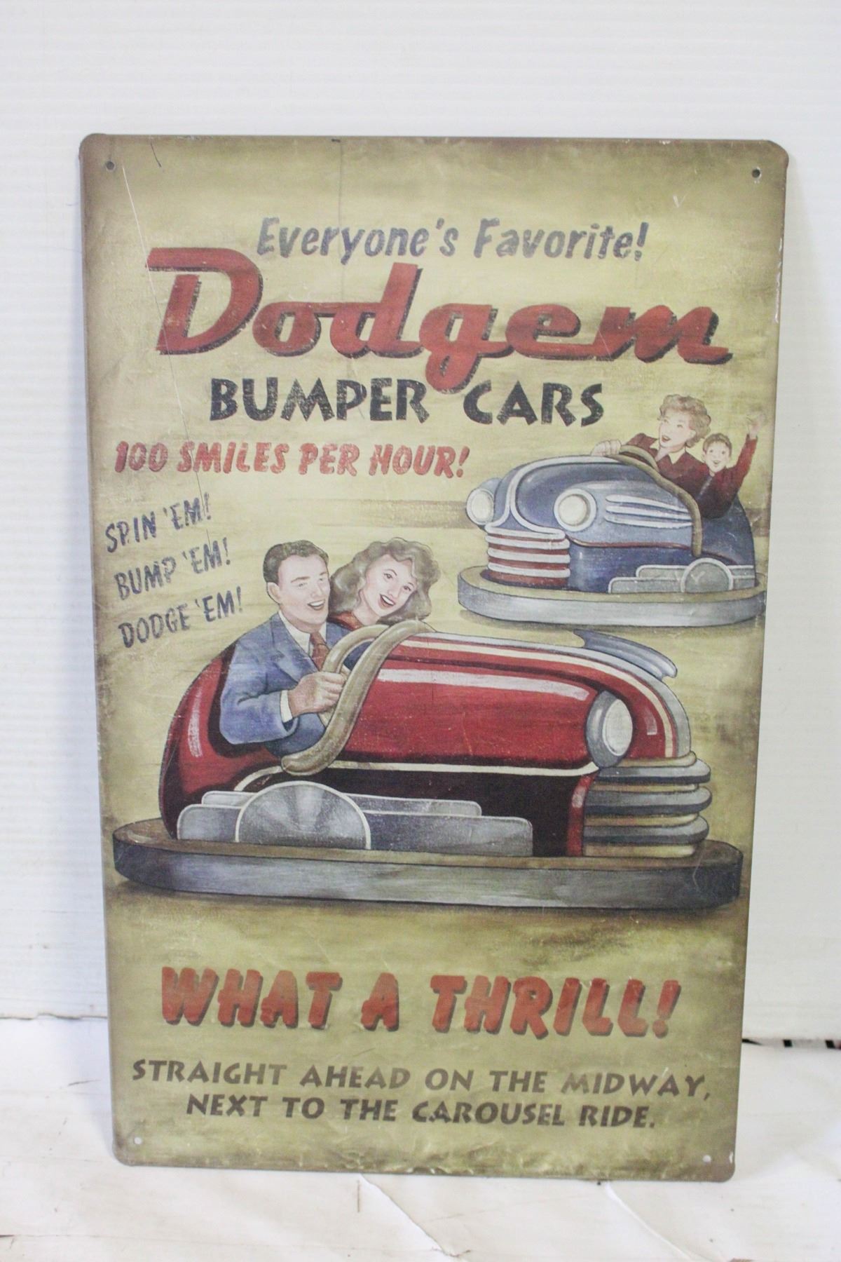 METAL DODGE BUMPER CARS VINTAGE PLAQUE 16" X 10"