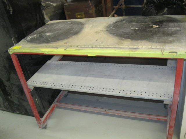 METAL FRAMED TABLE ON CASTERS - 50" x 25"