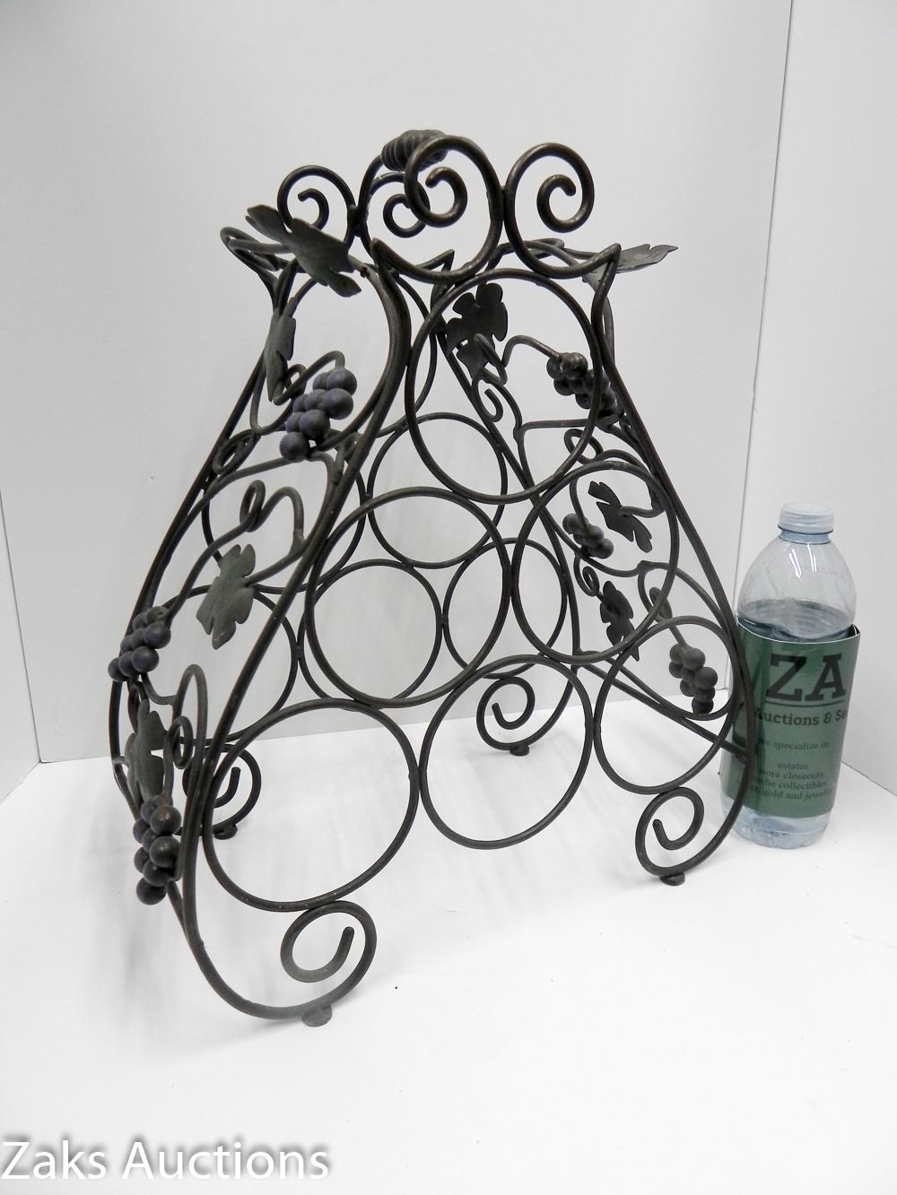 METAL GRAPE THEMES WINE BOTTLE HOLDER. HOLDS 6 BOTTLES