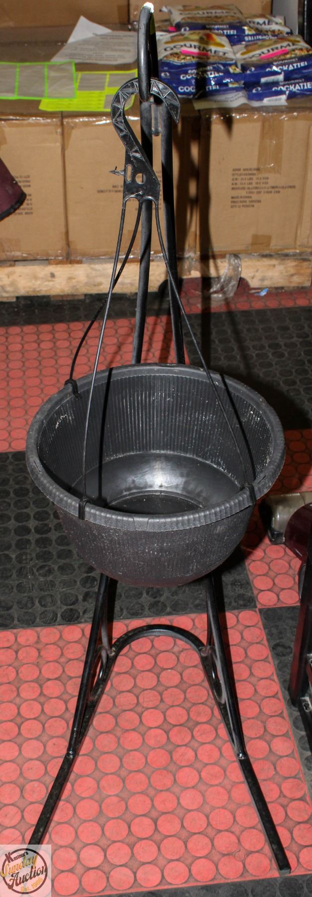METAL HANGING PLANT STAND W/POT FOR PATIO/GARDEN