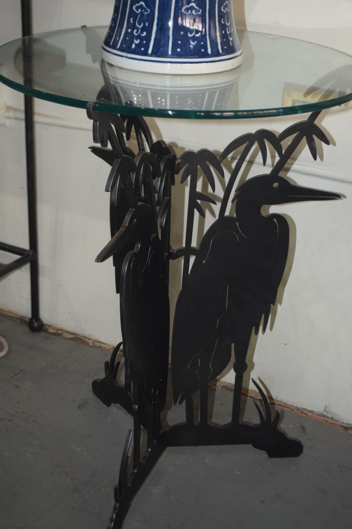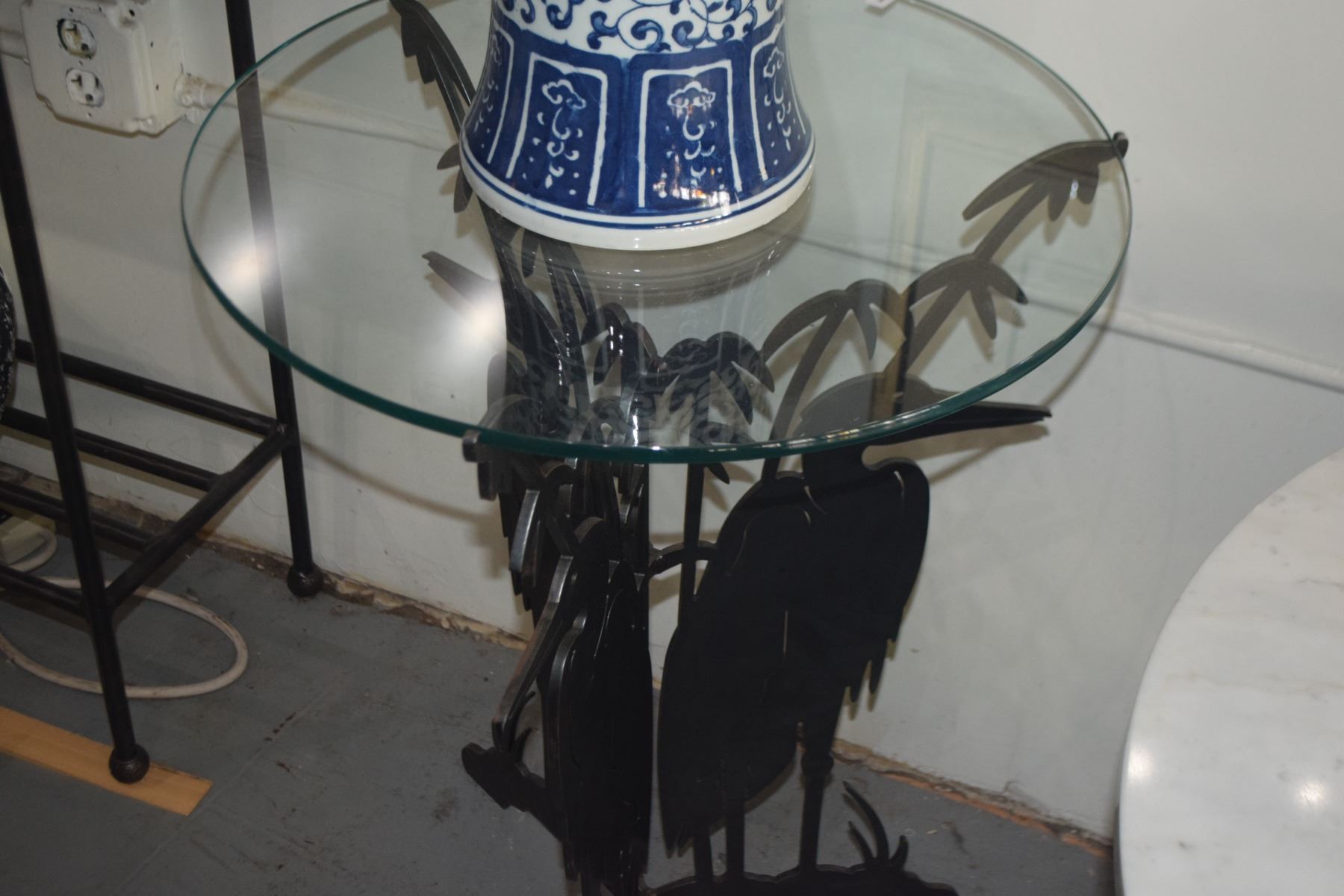 METAL HERON PEDESTAL TABLE W/GLASS TOP (19")