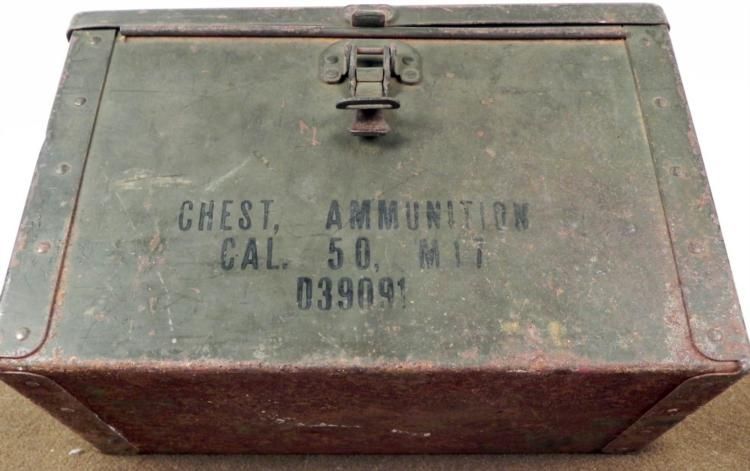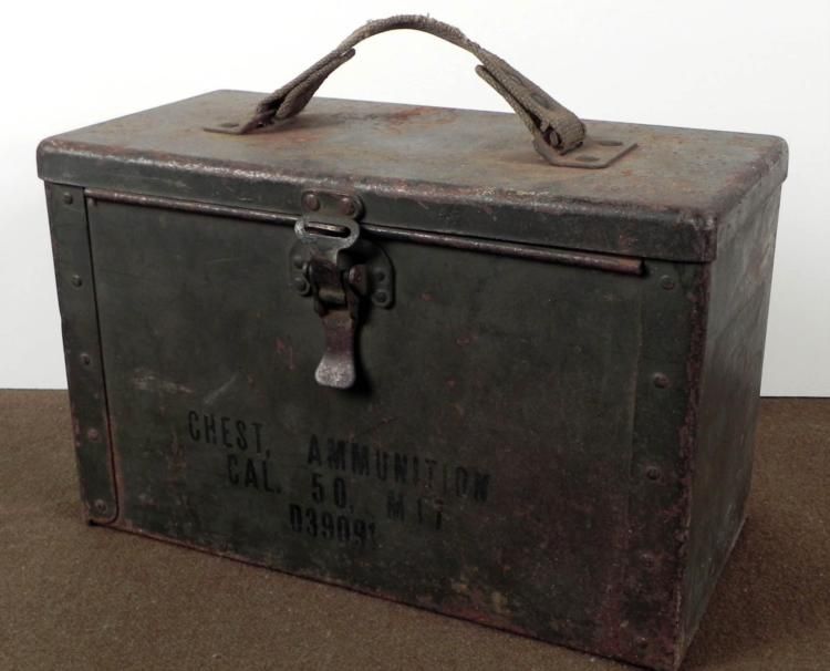 THIS IS A METAL M17-50 CALIBER CHEST AMMUNITION BOX WITH A WEB HANDLE. * * * * *