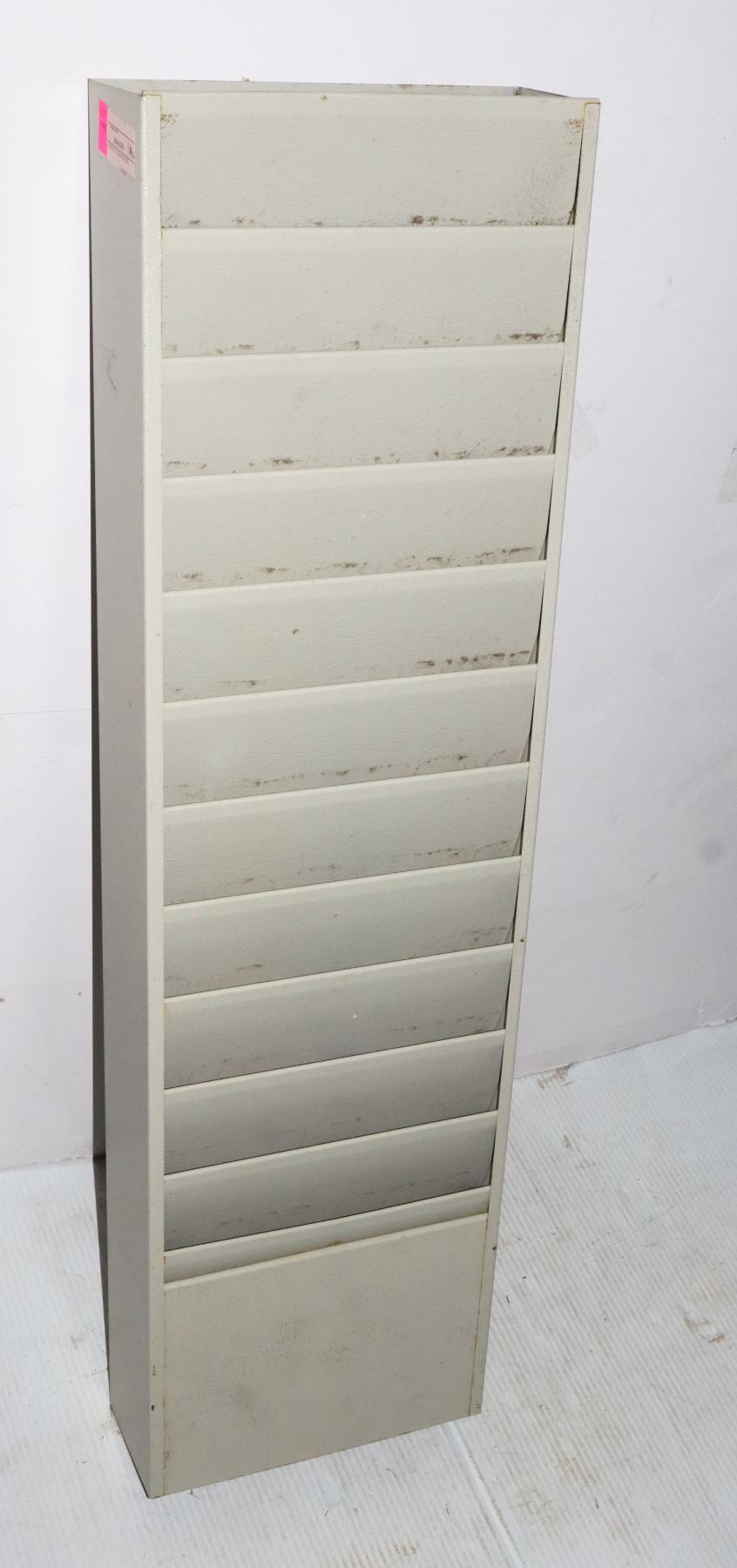 APPROX. 35.5" TALL BY 10''' WIDE BY 4" DEEP. HAS RUST. HAS HOLES FOR HANGING