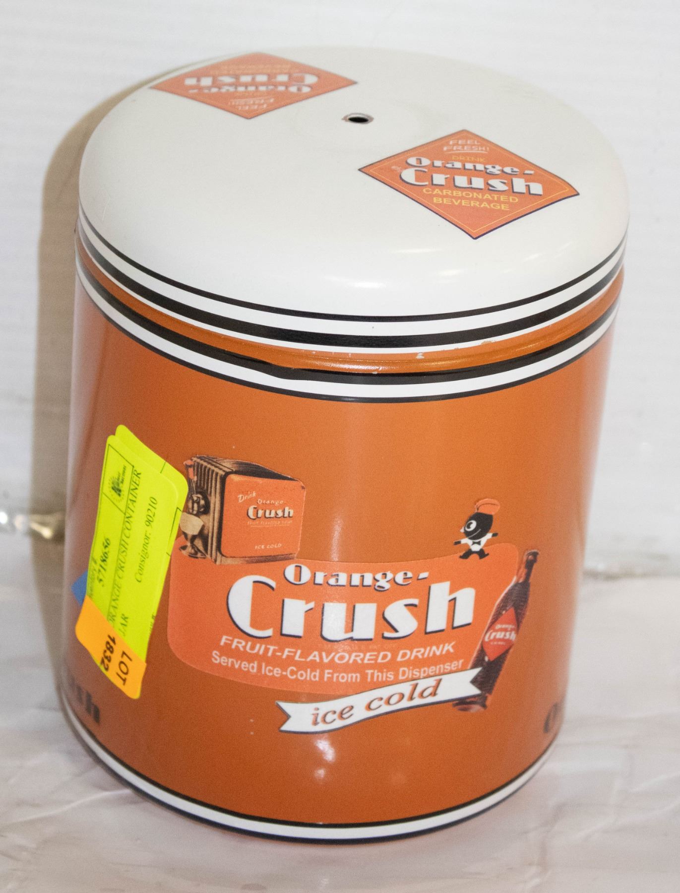 METAL ORANGE CRUSH CONTAINER COOKIE JAR