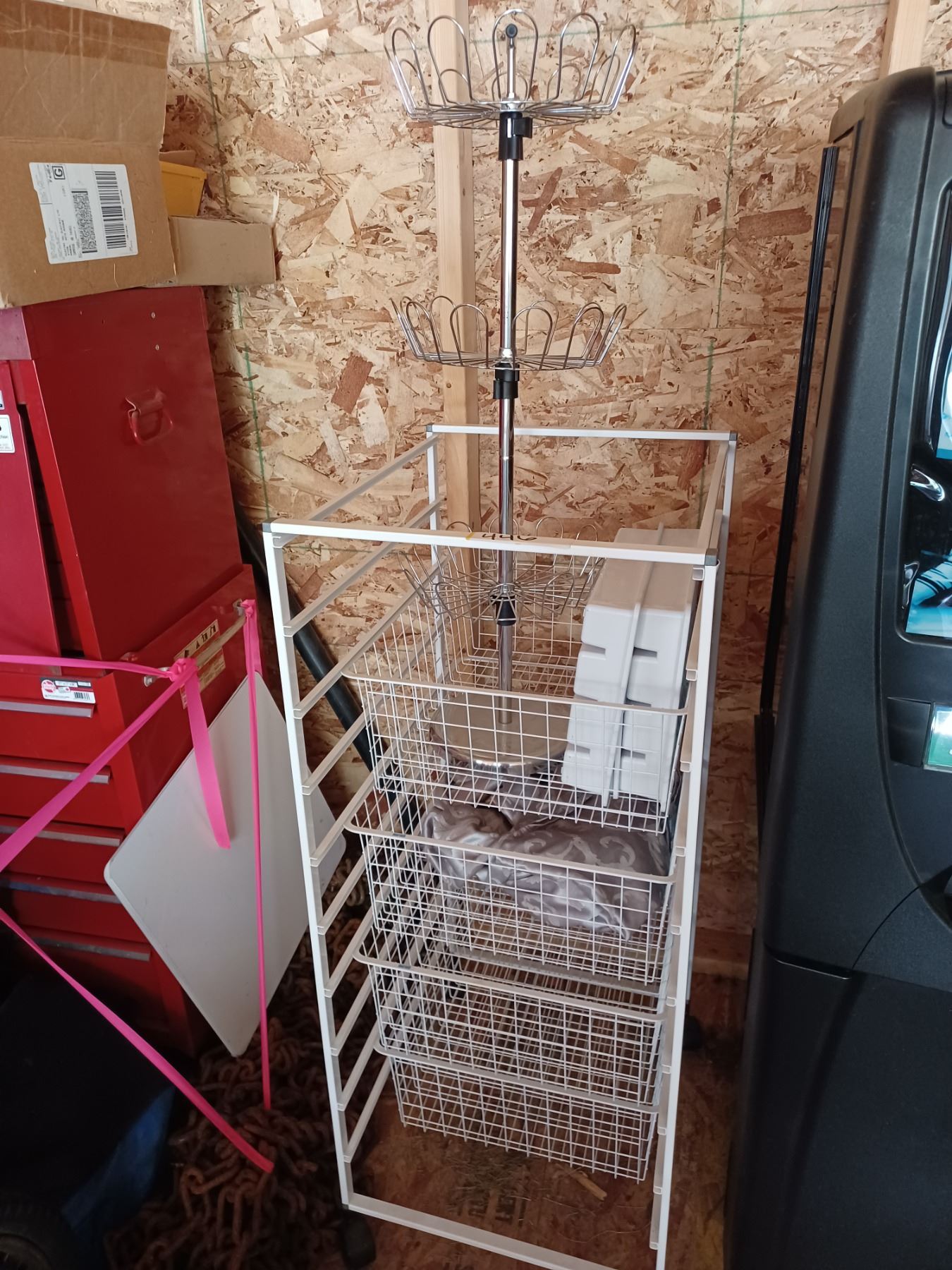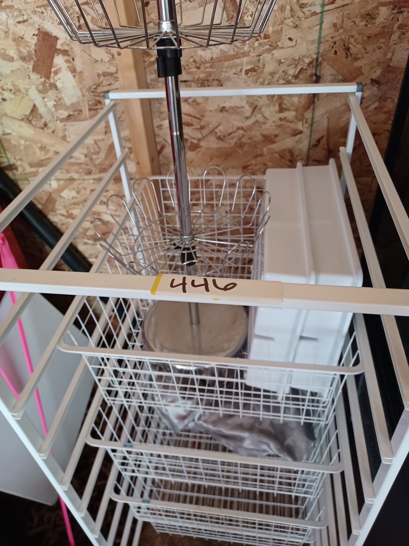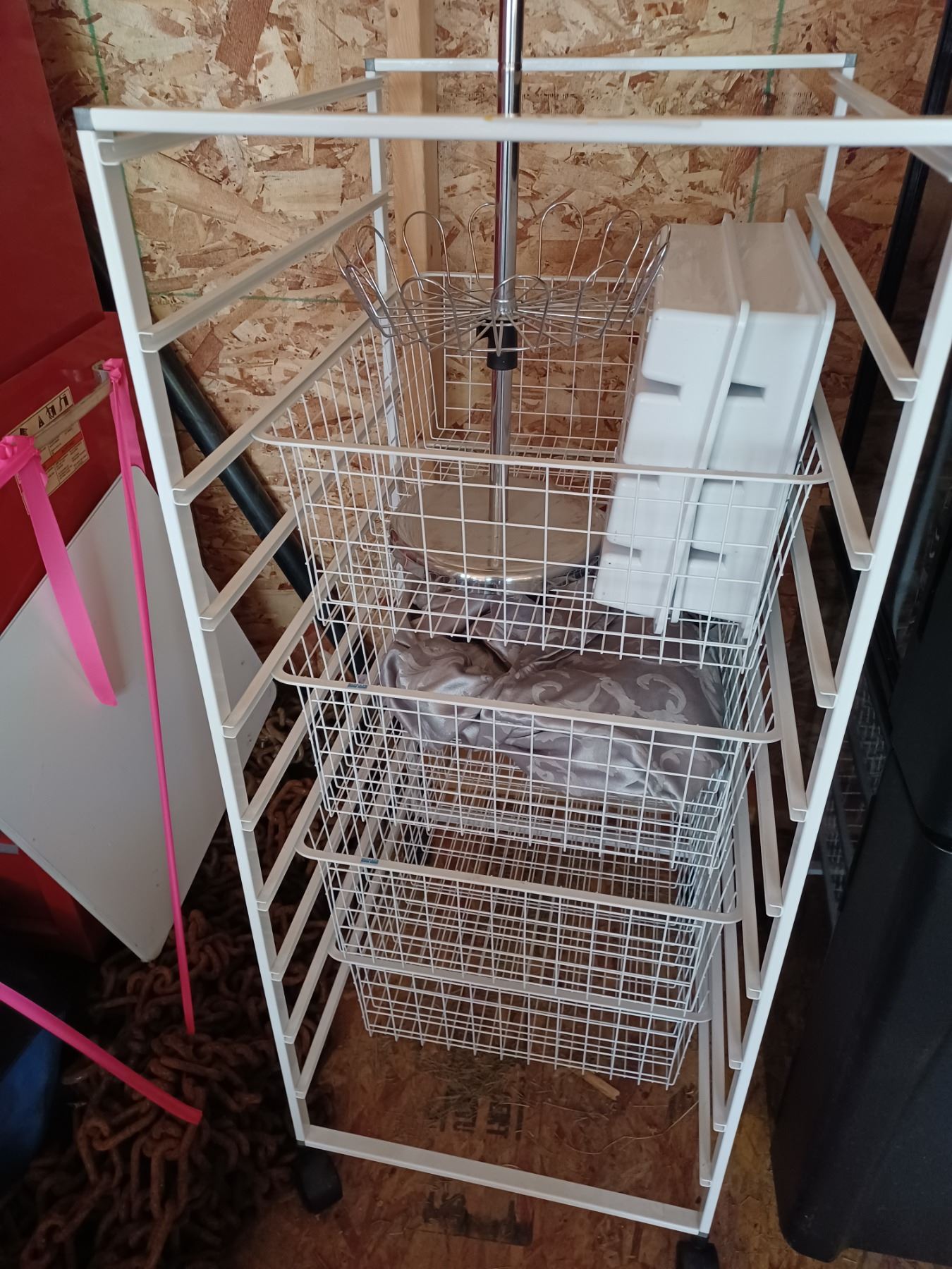 METAL PANTRY STAND(TALL) C/W 4-BASKETS (18" X 21") & MISC. KITCHEN CONTENTS