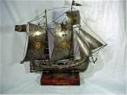 METAL SCULPTURE OF SAILING SHIP SIGNED 23" X 23".
