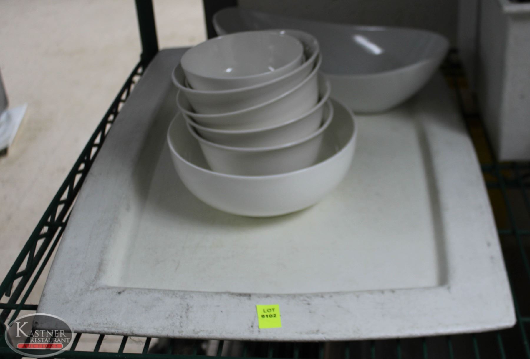 METAL SERVING TRAY WITH 8 ASSORTED PORCELAIN BOWL