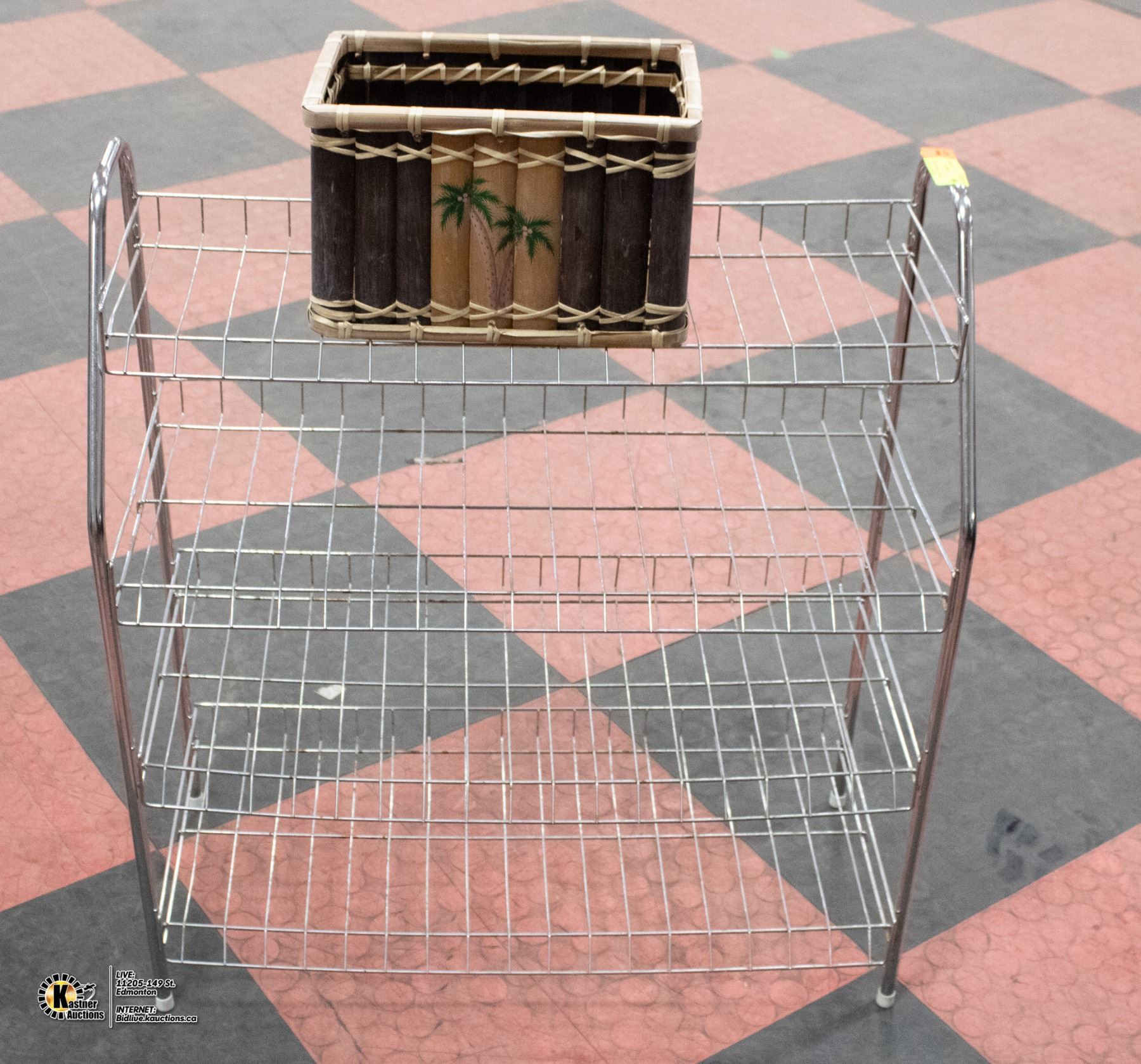 METAL SHOE RACK + SMALL WICKER DECOR BASKET