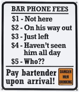 METAL SIGN: BAR PHONE FEES **|**|** METAL SIGN: BAR PHONE FEES