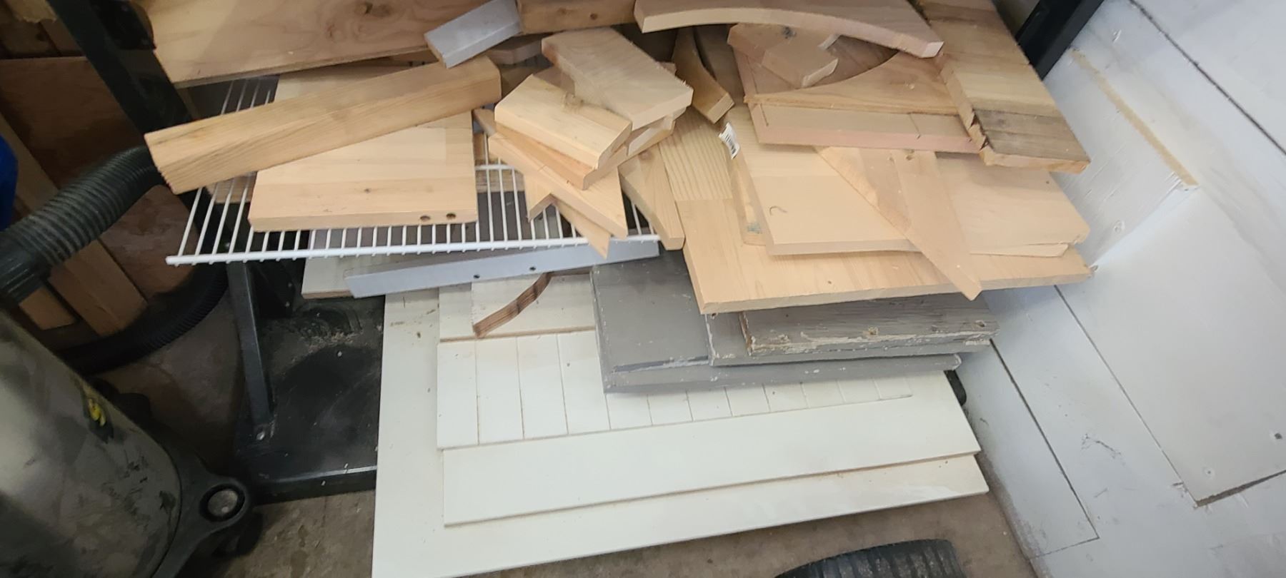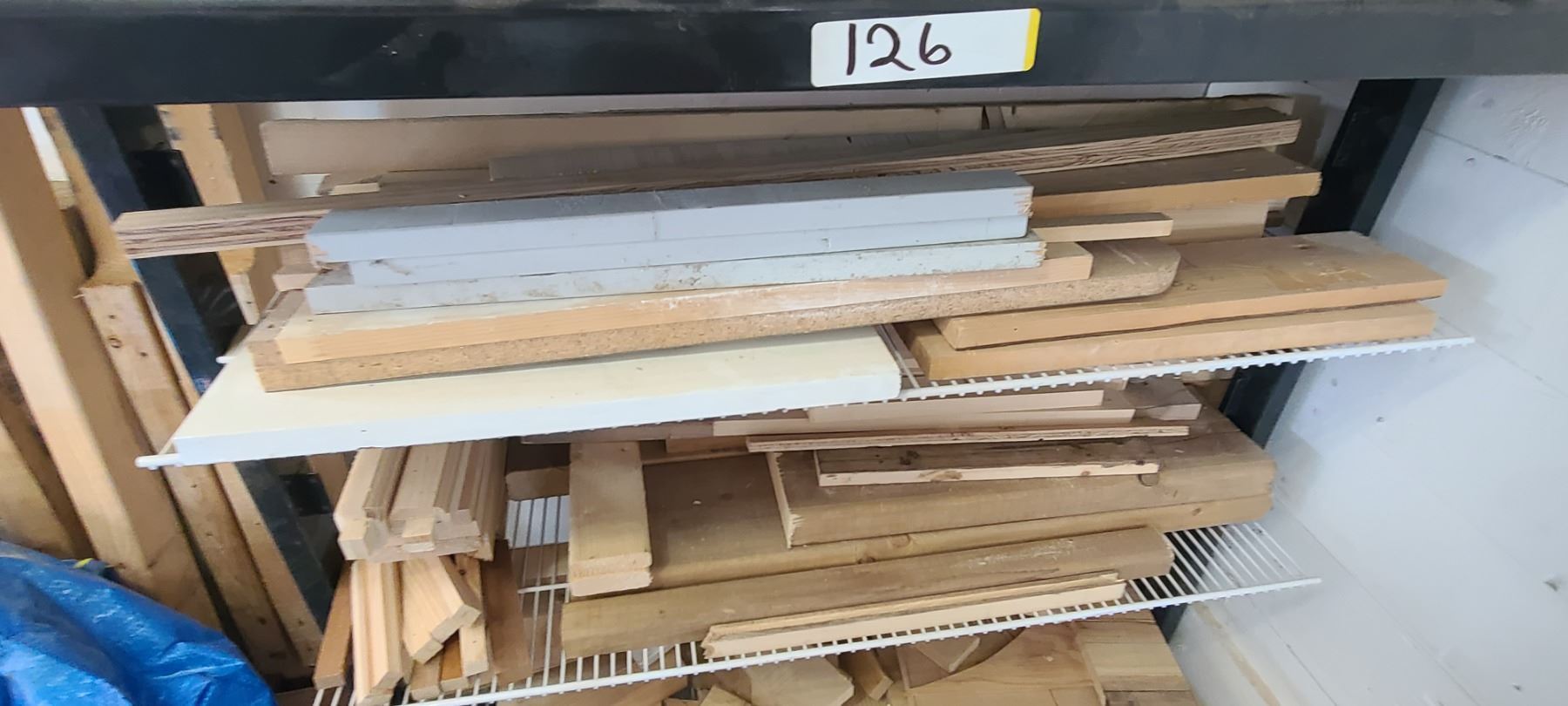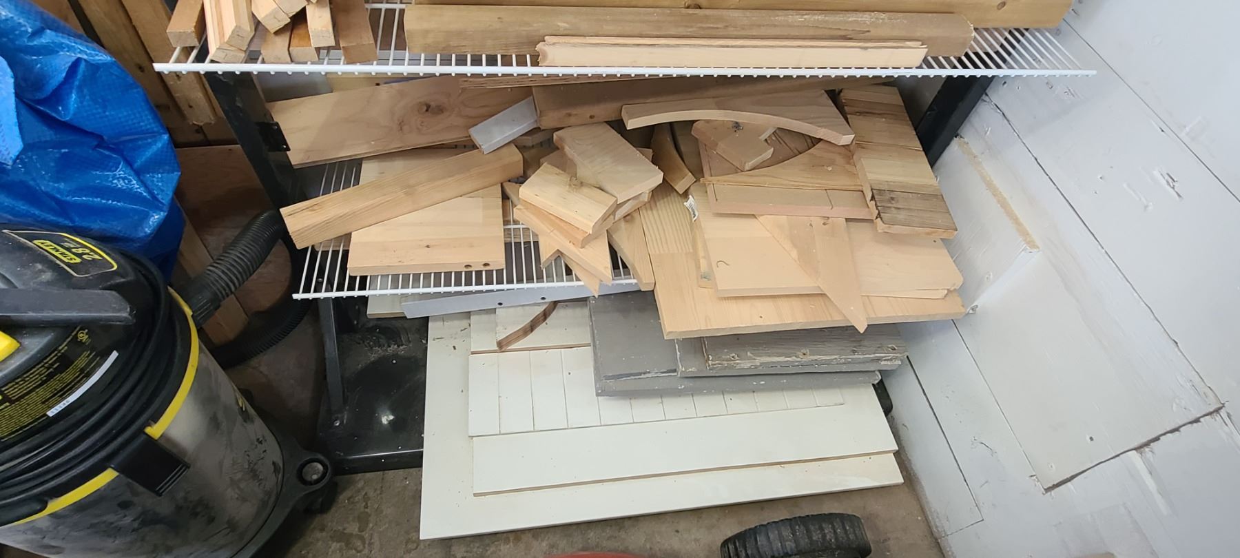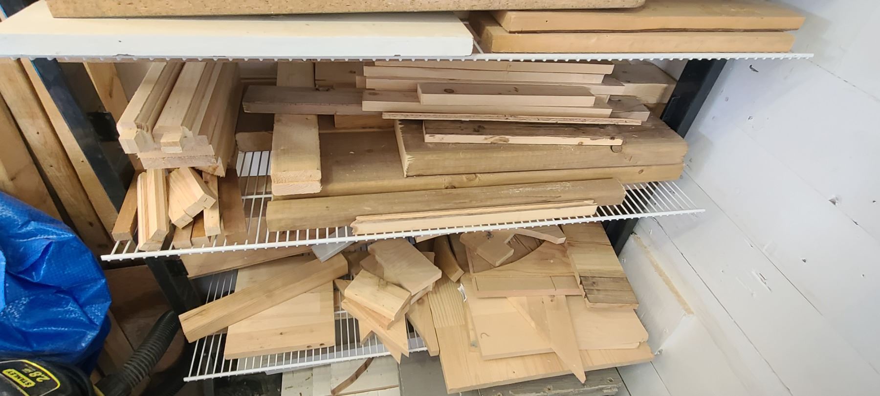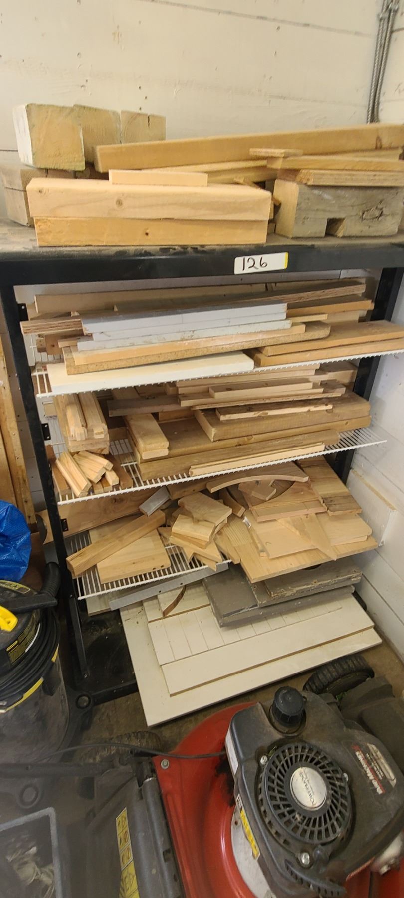 METAL STAND COMES WITH THREE SHELVES AND SCRAP WOOD