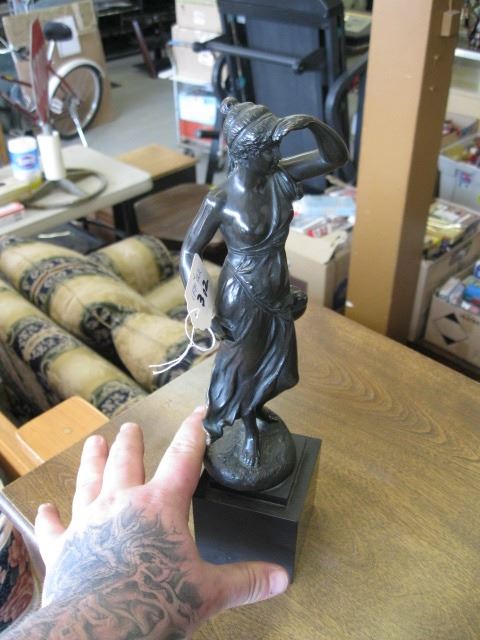 METAL STATUE OF GREEK WOMAN ON MARBLE BASE