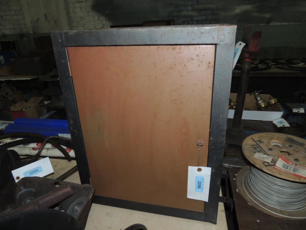 TOOL BOX, STORAGE BOX, METAL STORAGE BOX, GARAGE STORAGE, SHOP STORAGE, SAFETY STORAGE AS SHOWN SEE PHOTO FOR MORE DETAILS.