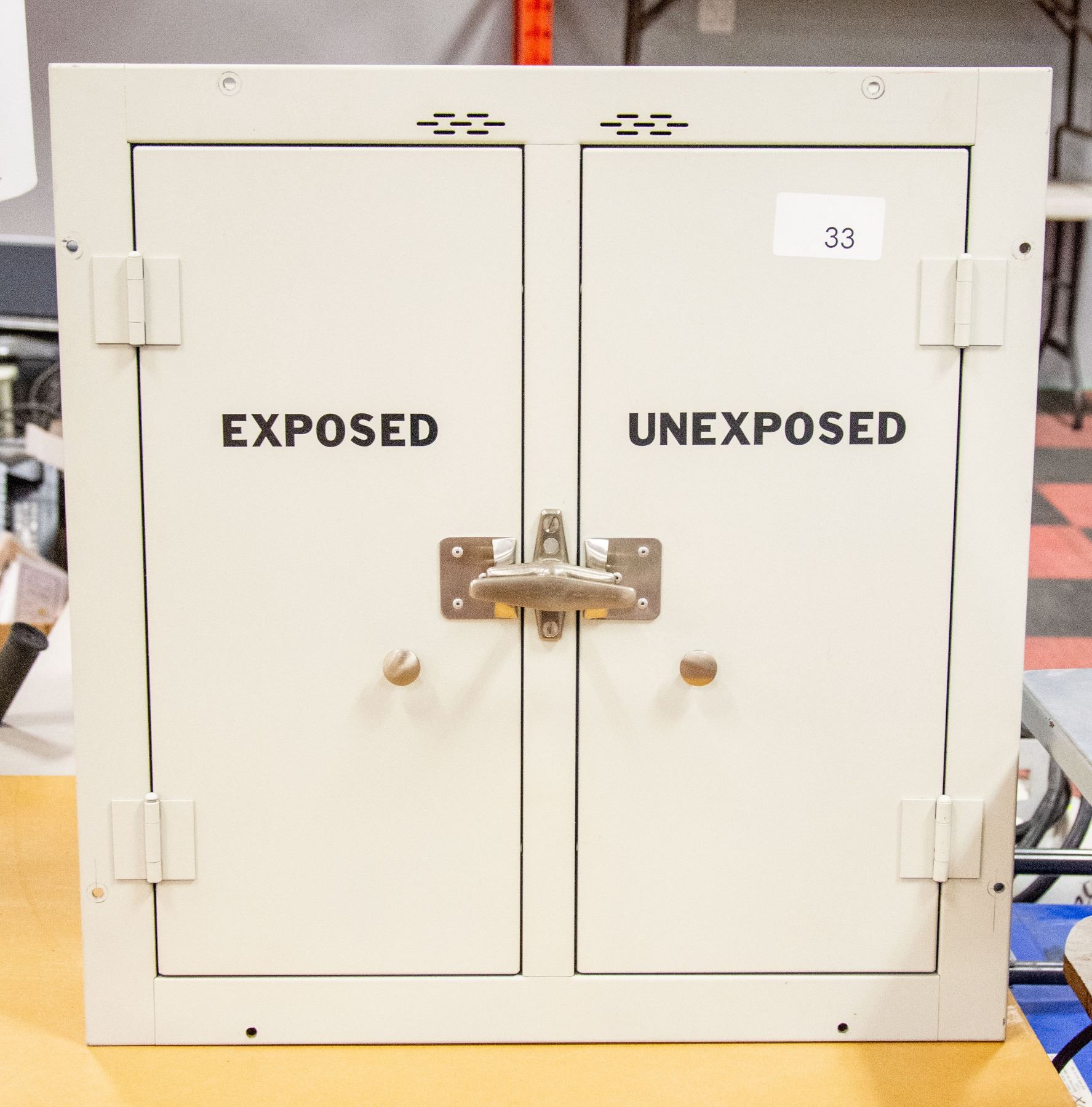 METAL STORAGE CABINET WITH DOORS ON BOTH SIDES, 24"H X 23"W X 22"D