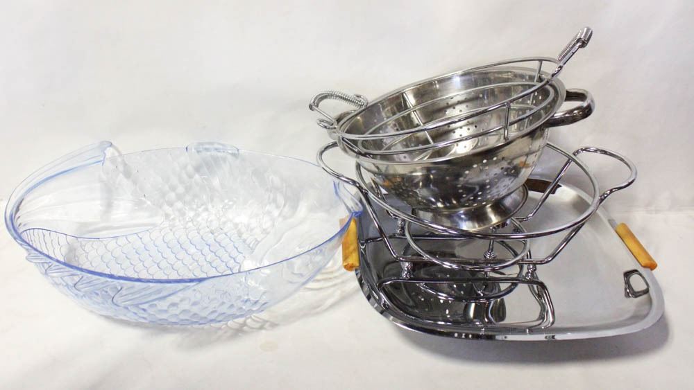 METAL STRAINER /LG PLASTIC FISH BOWL & MORE