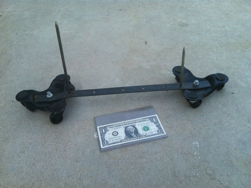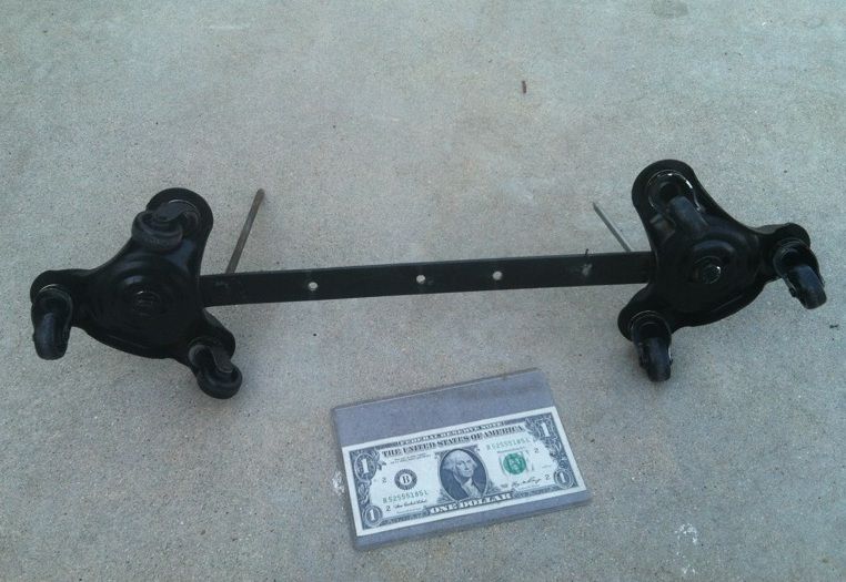 This is rolling metal trolley or truck. It has two casters with three wheels on each. Excellent for a large stuffed animal, body, or what ever you want to mount on it.