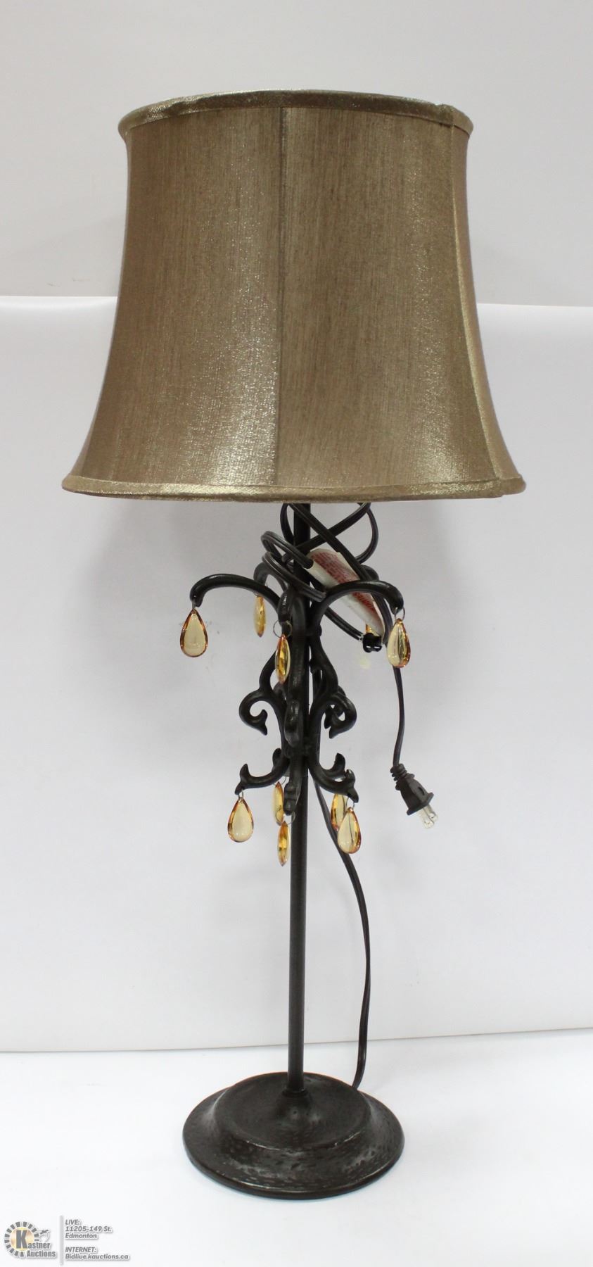 METAL TABLE LAMP WITH TEAR DROP ACCENTS.
