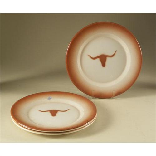 METAL TEXAS LONGHORN PLATES: Vintage Texas Longhorn metal plates. Colored with University of Texas Longhorn Burnt Orange. 12 inches in diameter. Some scratches on bottom of plates, no scratches to surface of plates.