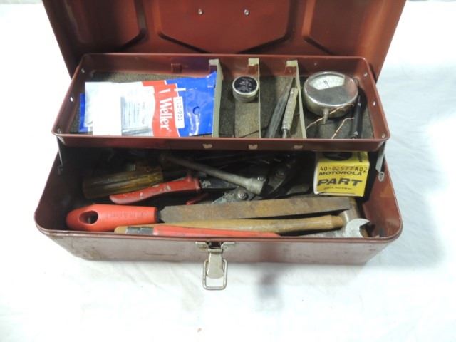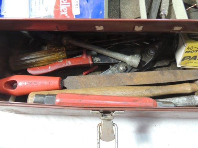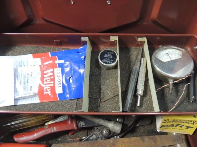 NUT DRIVERS, FASTENERS, SOLDER SOLDER GUN TIPS, ELECTRICAL METERS, TIN SNIPS AND MORE AS SHOWN. BOX IS FULL!