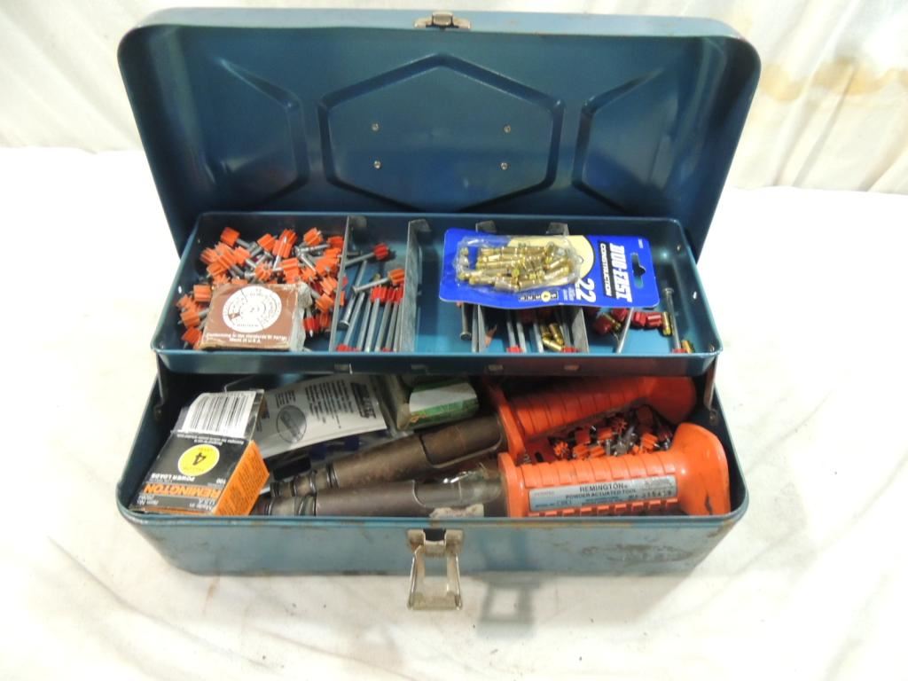 POWER LOADER, CONSTRUCTION NAILS, REMINGTON POWER ACTUATED TOOL, PARTS, AS SHOWN SEE PHOTO FOR MORE DETAILS.