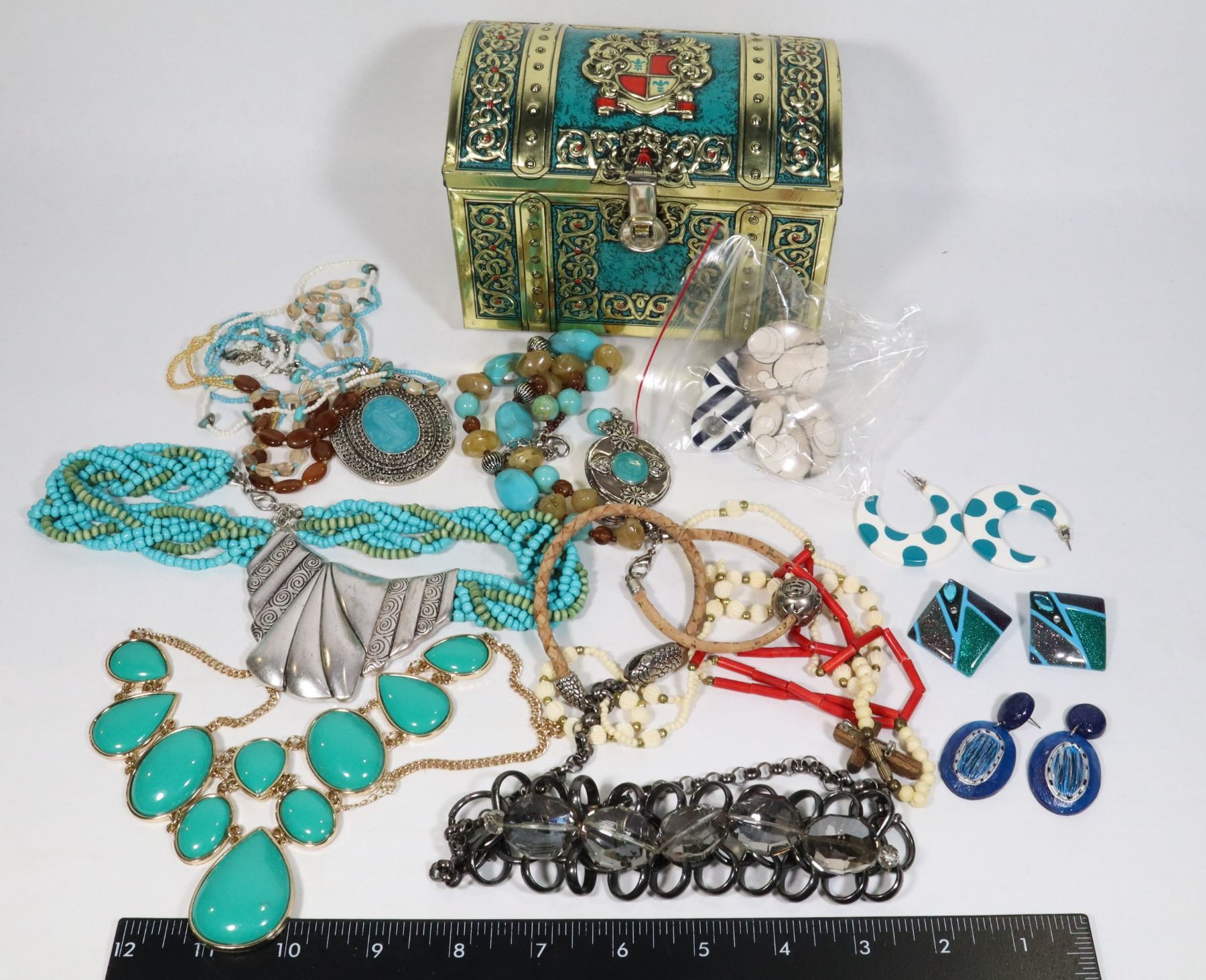 METAL TREASURE BOX WITH ASSORTMENT OF JEWELRY